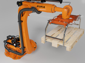 KR210 Quantec mit großem Energiezuführungsflansch und Palettengreifer 3