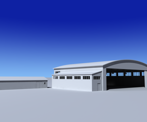 Kleiner Flugplatz mit Hangar 10