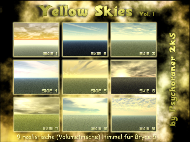 9 gelbe volumetrische Himmelseinstellungen für Bryce