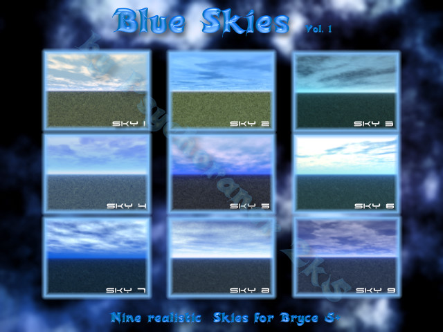 9 blaue realistische Himmelseinstelllungen für Bryce