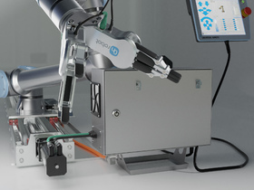 Industrie Roboter "Universal robots" UR10s mit Laufschiene und 2 x on robot zwei Finger Greifer.