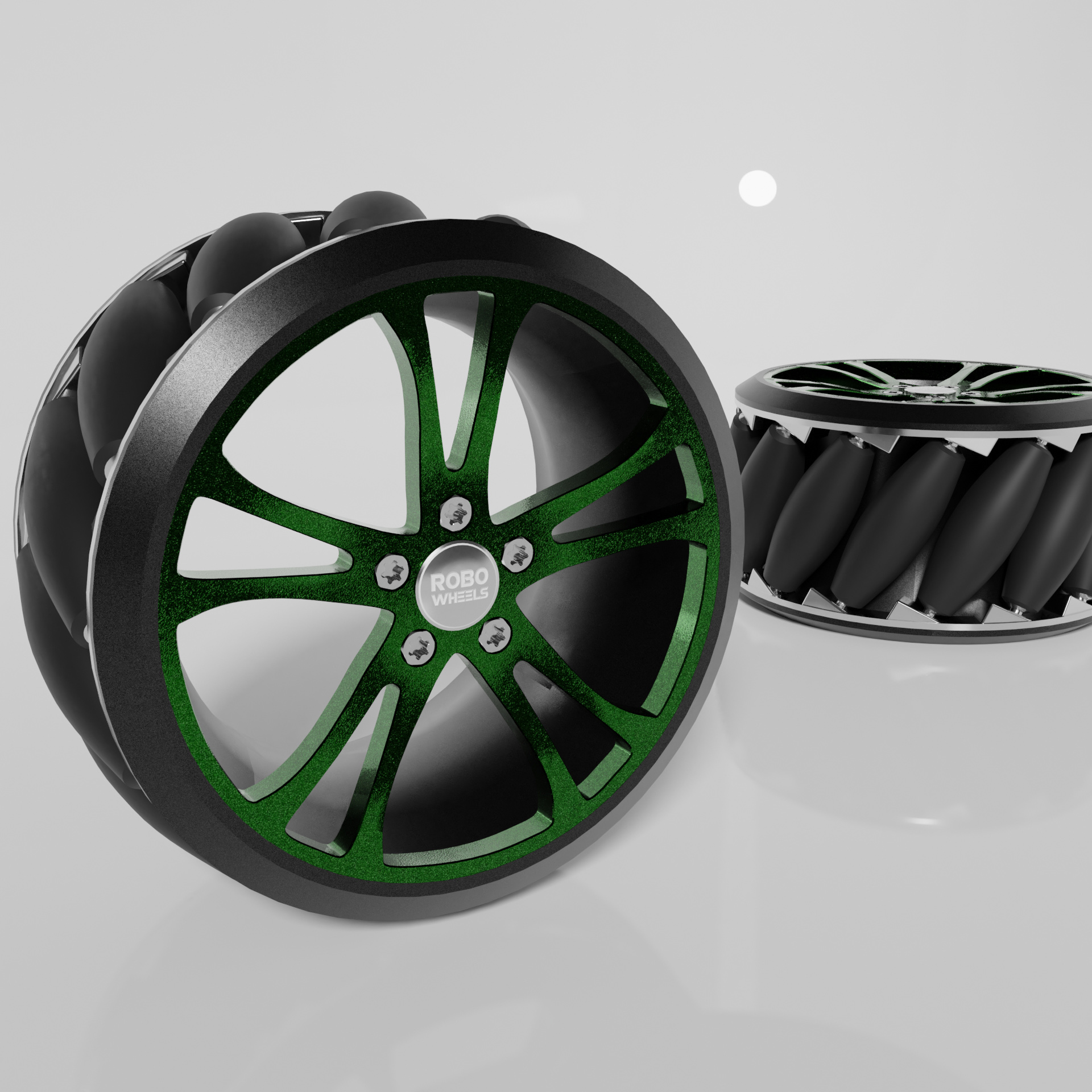 Da ich aus Übungs zwecken zur Wiederholung neige habe ich noch ein zweites Mecanum wheel modeliert. das sollte auch noch mehr realistisch sein, mit stimmigen Loch abständen und stabileren rollen lagern.