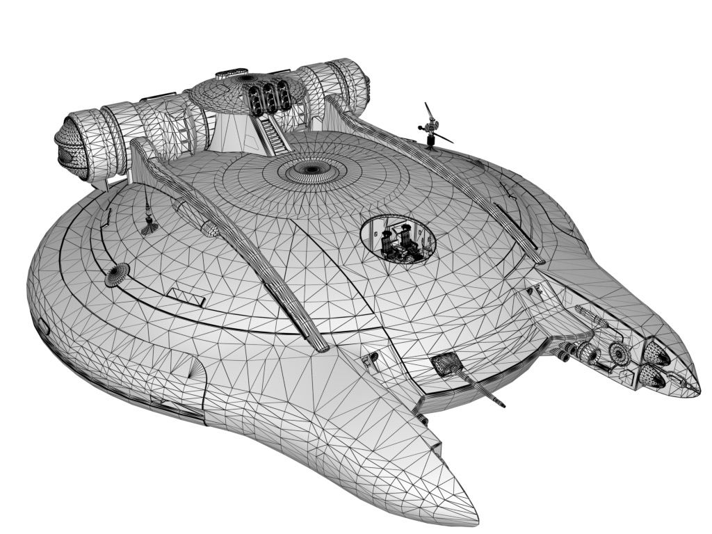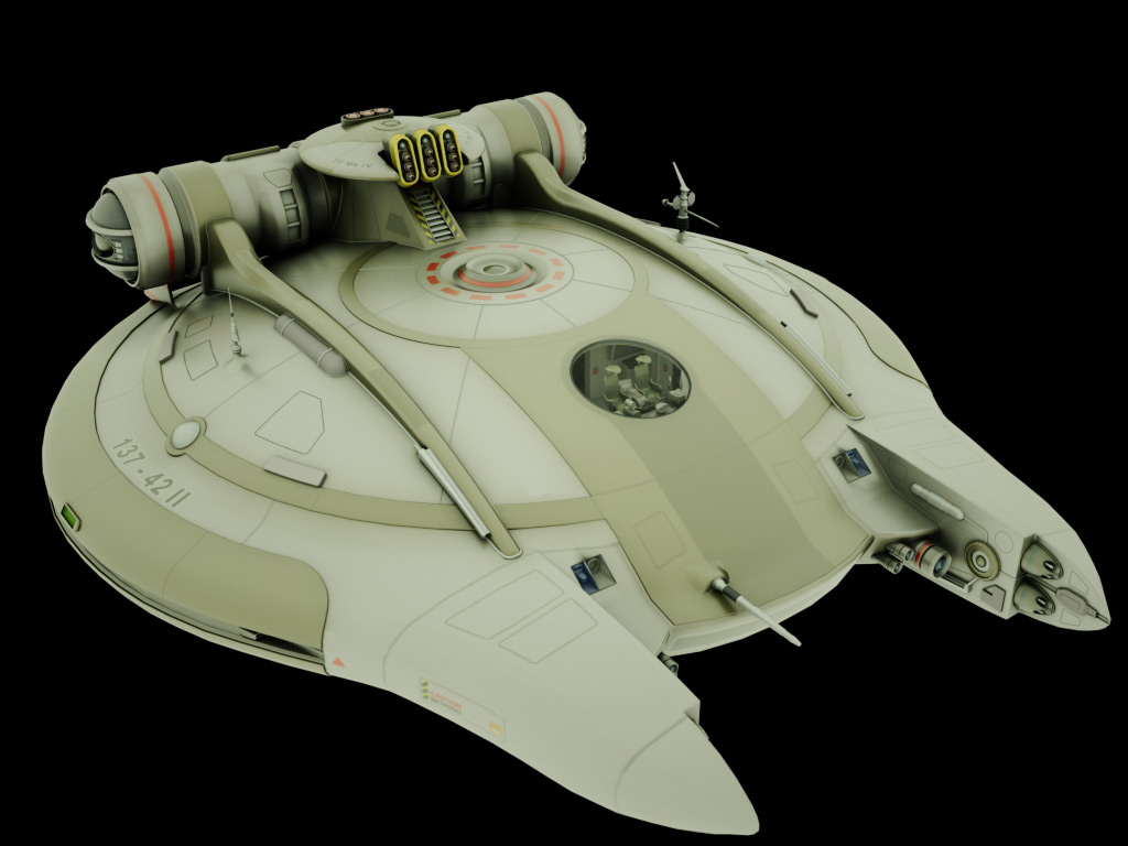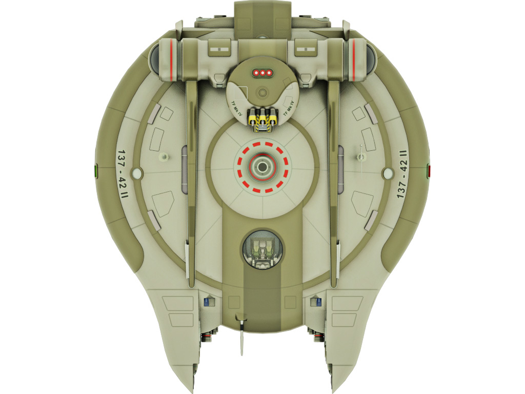 Das passende Beiboot für den Merzkreuzer oder für Standalone-Betrieb, ganz nach Belieben. Für den Einsatz im "Nicht-Perry-Rhodan-Universum" liegen Textursätze ohne Beschriftung in den Auflösungen 2048 x 2048 sowie 4096 x 4096 px bei. Wer sich die Arbeit machen möchte, eine völlig andere Texturierung vorzunehmen, findet auch die Template im Texturenverzeichnis.