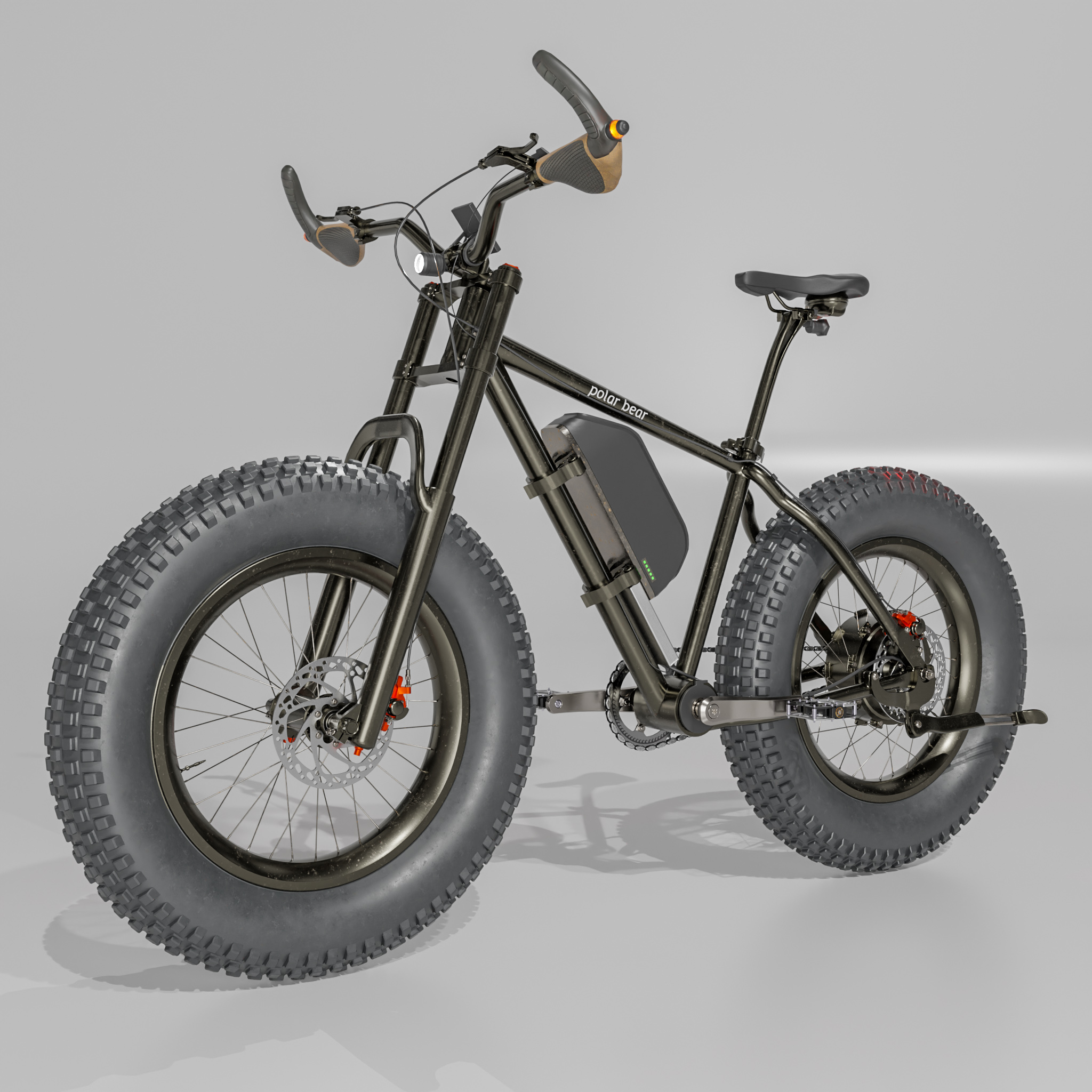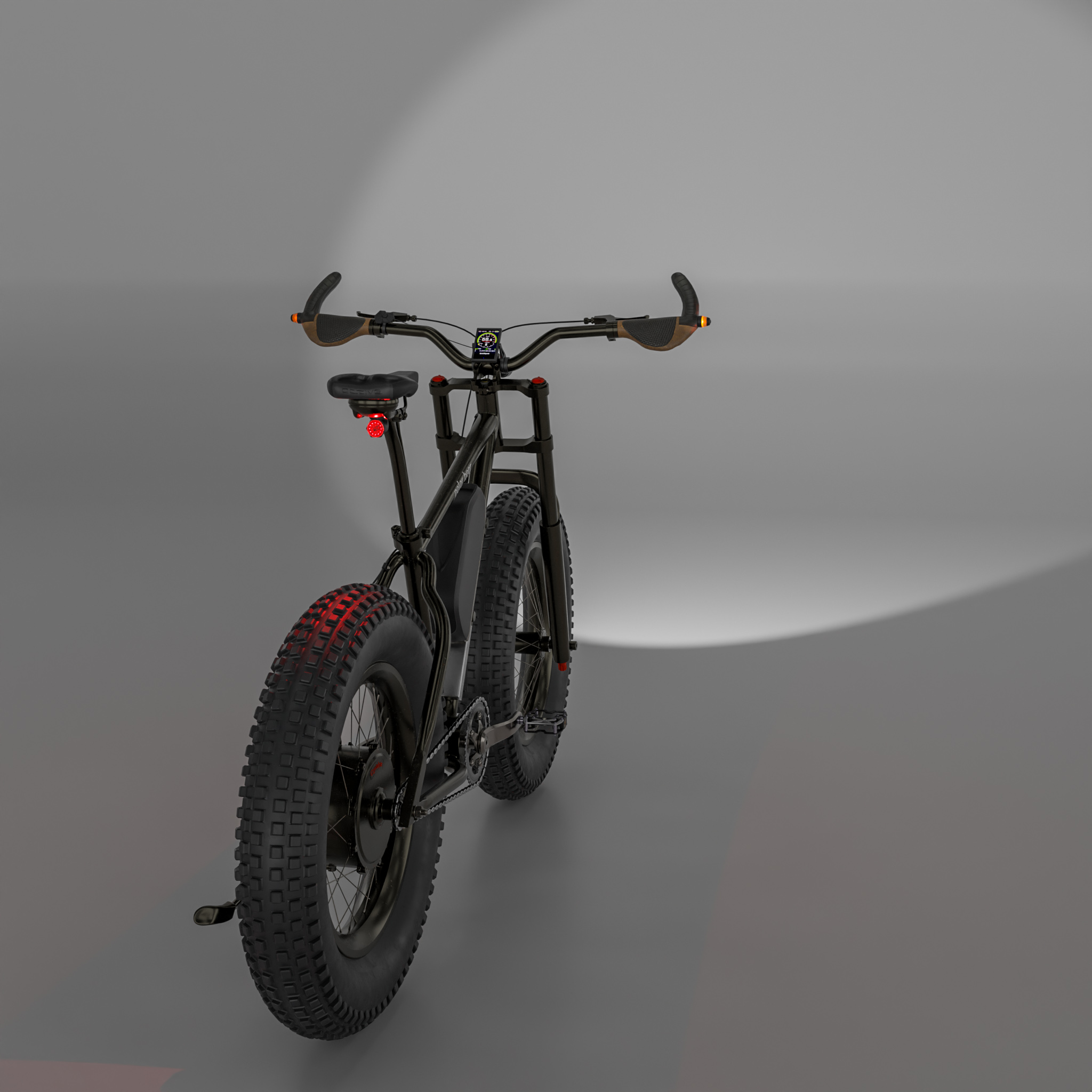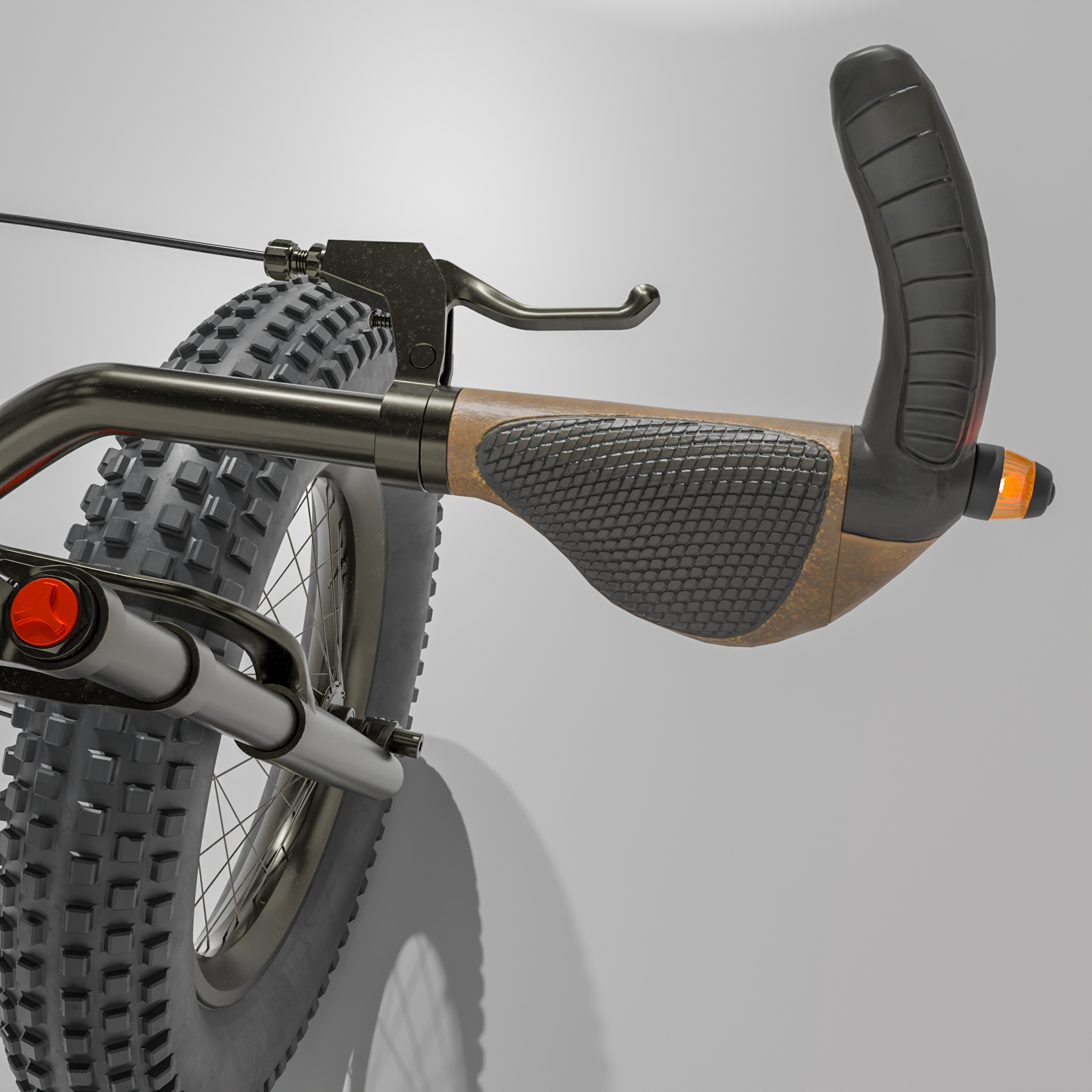 Dieses Fatbike ist speziell für schwer befahrbare Schneestrecken und Pisten konstruiert. Mit seinen 29 x 5.0 Zoll Reifen, die jeweils 70 grobe Stollen pro Reihe aufweisen, und seinem 1000 Watt Hecknabenmotor bietet es besonders viel Traktion und Vorschub. Das Singlespeed-Rad verzichtet aufgrund seines starken E-Motors auf eine aufwendige Kettenschaltung und ist somit extrem wartungsarm. Es ist mit einem extra breiten Lenker und speziellen Lenkgriffen ausgestattet, die eine leichte Manövrierbarkeit im schwierigen Gelände ermöglichen. Die Kurbelarme, Pedale, Kette und Reifen stehen in Bewegungsabhängigkeit und sind kinderleicht zu animieren. Achtung: Durch die groben Stollen neigen die Räder in einer Animation dazu, scheinbar rückläufig zu drehen (Plattenspieler-Effekt). Bitte passe deine Animationsgeschwindigkeiten und Bildwiederholraten entsprechend an. Die Lenksäule (Vorderrad, Gabel, Lenker und Seilzüge) stehen ebenfalls in Bewegungsabhängigkeit und können mit dem Empty-Objekt "fork" bewegt werden. Zum Drehen der Reifen bzw. des Antriebsstranges rotiere bitte die Kurbelarme. Der Seitenständer ist auch beweglich und für eine Fahrzeugneigung von 10° ausgelegt. Bitte benutze für deine Modellmanipulationen und Animationen die Transformations-Orientierung "local". Ich wünsche dir viel Spaß mit dem Blender-Modell und mögen deine Szenen gelingen.