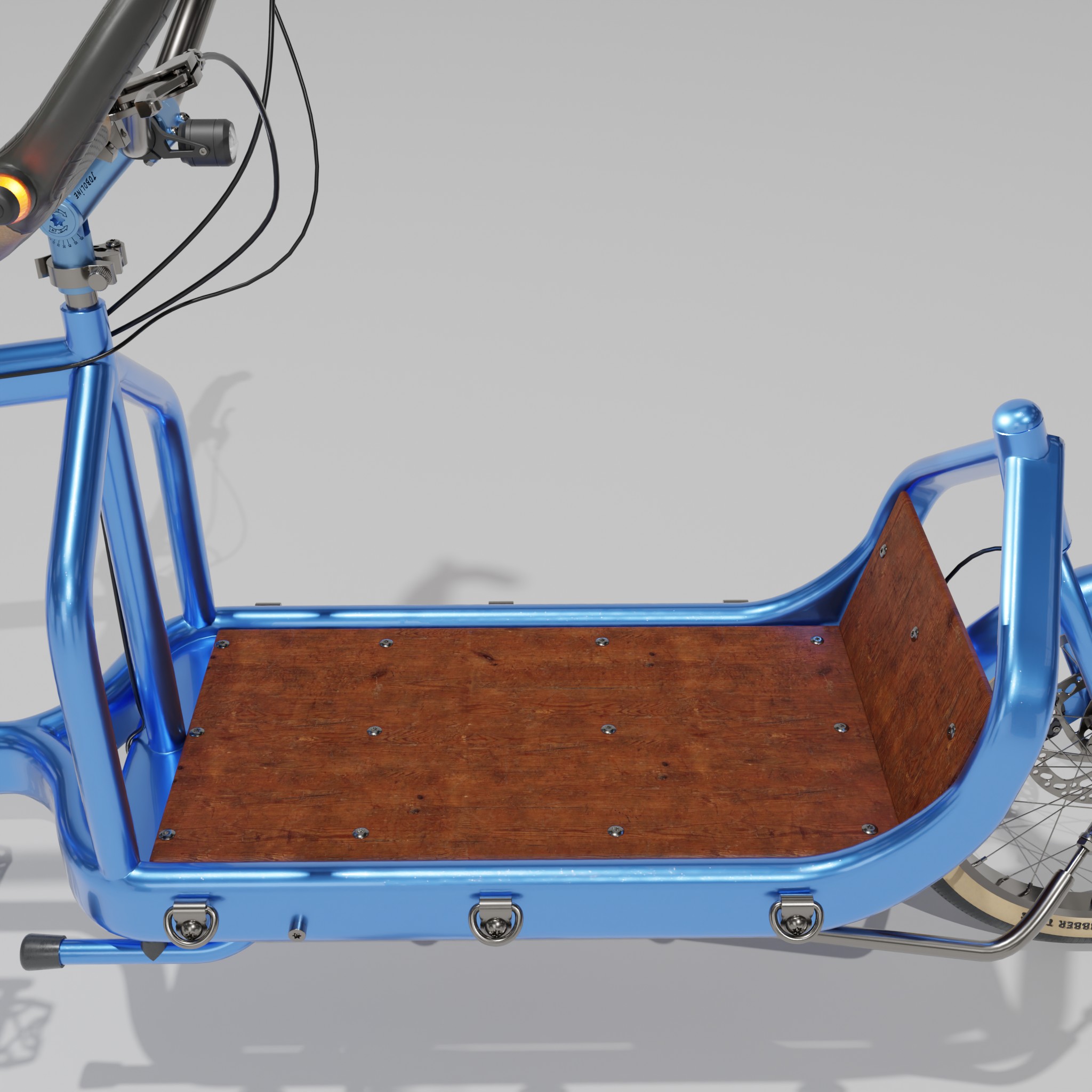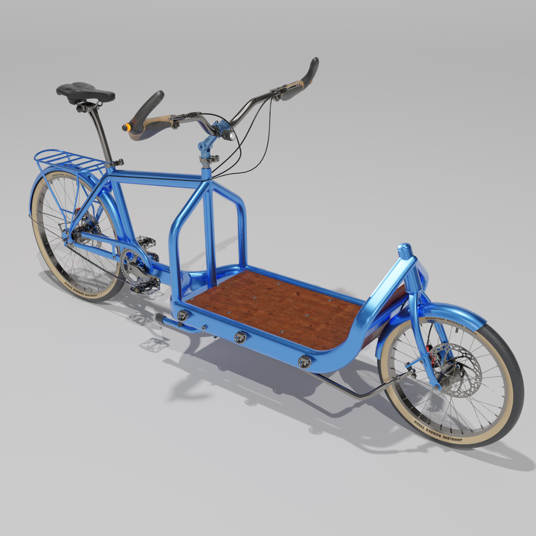Dieses robuste Schwerlast-Cargobike ist ein detailliertes 3D-Modell, das sich ideal für realistische Renderings und Animationen eignet. Es zeichnet sich durch seine stabile Konstruktion und wartungsarme Technik aus. Zu den Merkmalen gehören: