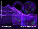 Bryce Material (ab Version 5), einkanalig prozedural. Der Effekt wird durch Überlagerung zweier Körper desselben Materials verstärkt (additiv). Gut geeignet für Discolicht und SciFi Szenen.