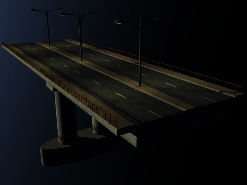Ein komplettes, voll texturiertes Brückenelement mit 4 Fahrspuren (2 je Richtung), Mittelweg, Bürgersteig und Laternenbeleuchtung. Das Element ist genau 300 Einheiten lang. Durch eine einfache Multi-Replikation mit einem X-Offset von 300 können so beliebig lange Brücken realisiert werden. Durch die Detailverleibtheit ist es auch für Nahaufnahmen geeignet. Die Laternen haben Lichtquellen, so dass die Brücke auch ohne weiteres schön in Nachtszenen eingesetzt werden kann. Über ein Feedback im Supportthread würde ich mich freuen.