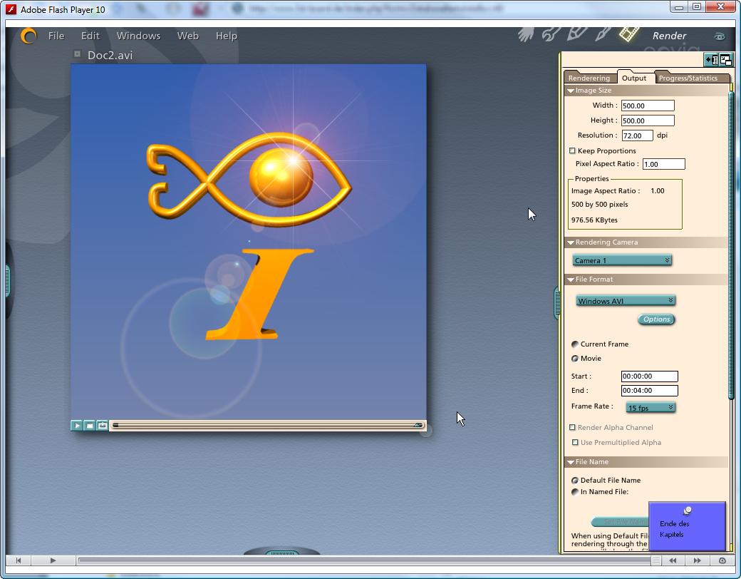 Letzter Teil der Übung: die Animation des Logos vorbereiten und dann rendern.