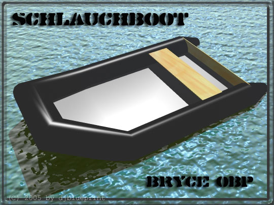 ZitatHabe mal ein einfaches Schlauchboot für Bryce gebastelt. Liegt als gepacktes obp vor. Die verschiedenen Bereich können einfach unterschiedlich texturiert werden.