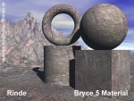 Bryce Material (ab Version 5), ein Kanal mit hoch aufgelöster Bildtextur und extra Bumpmap. Wirkt am besten im zylindrischen Mapping Modus, close-up auch auf planen Flächen.