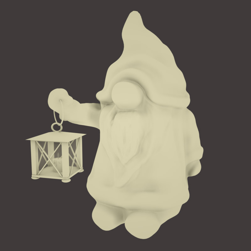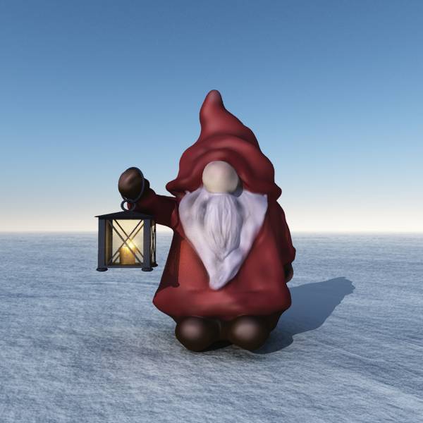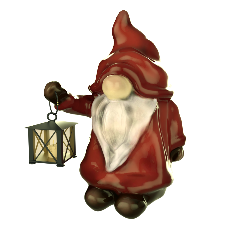 Die OBJ-Version enthält alle Texturen. Wichtel, Laterne, Laternenglas, Kerze, Docht und Flamme sind einzelne Materialien.