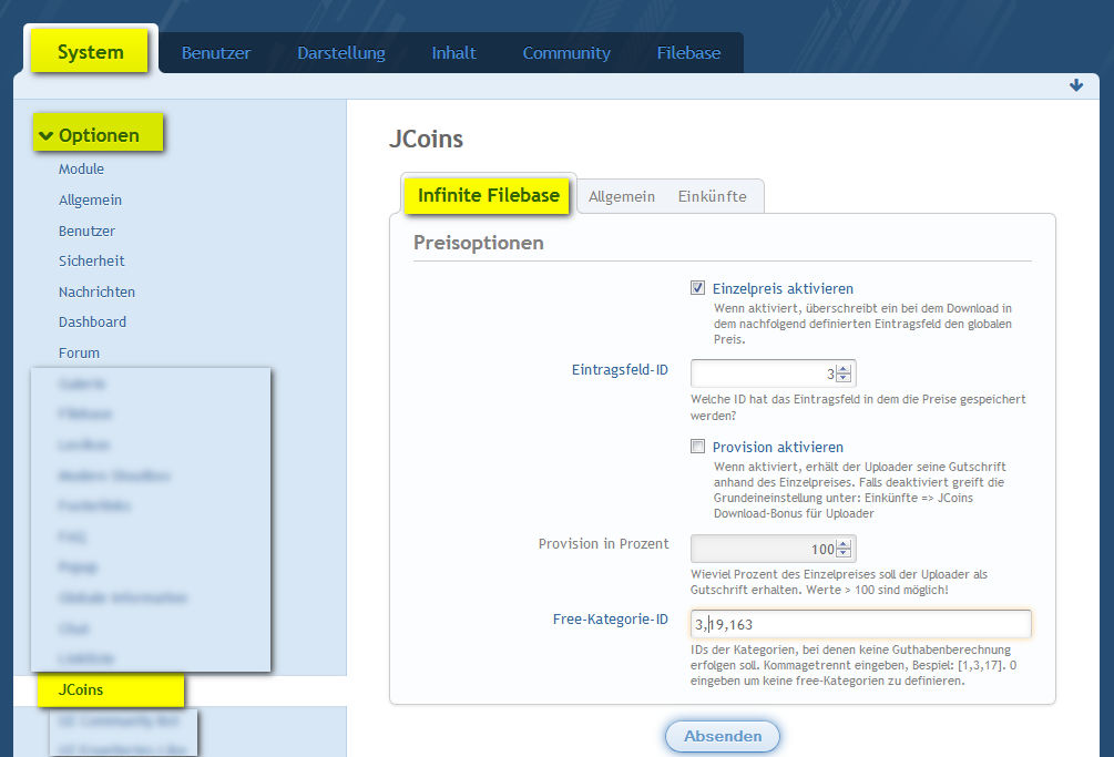 System >> Optionen >> JCoins >> Einkünfte >> Infinite Filebase