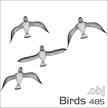 Ein einfacher statischer Vogelschwarm in Flug, der eher für mittlere Distanz oder die Ferne geeignet ist (im .obj-Format).