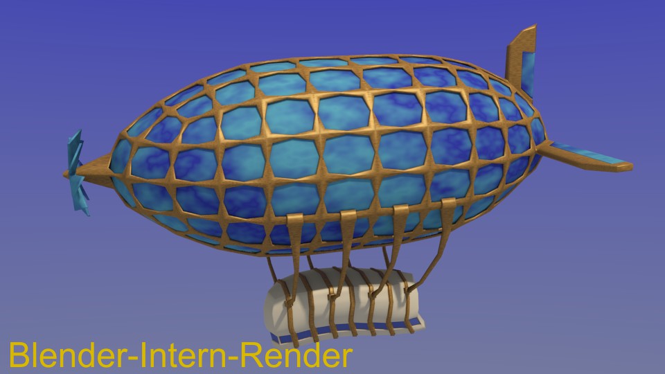 Der Zeppelin kommt mit einfachen Farben (4 Materialzonen) und kann jederzeit mit eigenen proceduralen Shadern des jeweiligen Anwendungsprogrammes aufgepeppt werden.