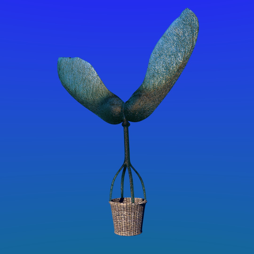 Ein etwas abstraktes Luftschiff. Ahornsamen mit Korbgondel.