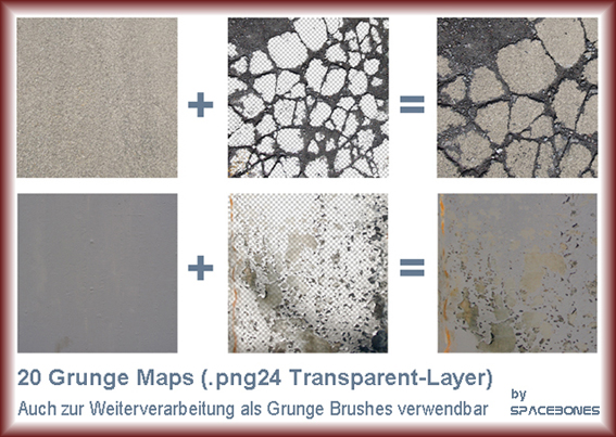 Lassen sich in Photoshop & Co. durch Reduzieren auf Hintergrundebene auch zu Grunge Brushes umbauen.