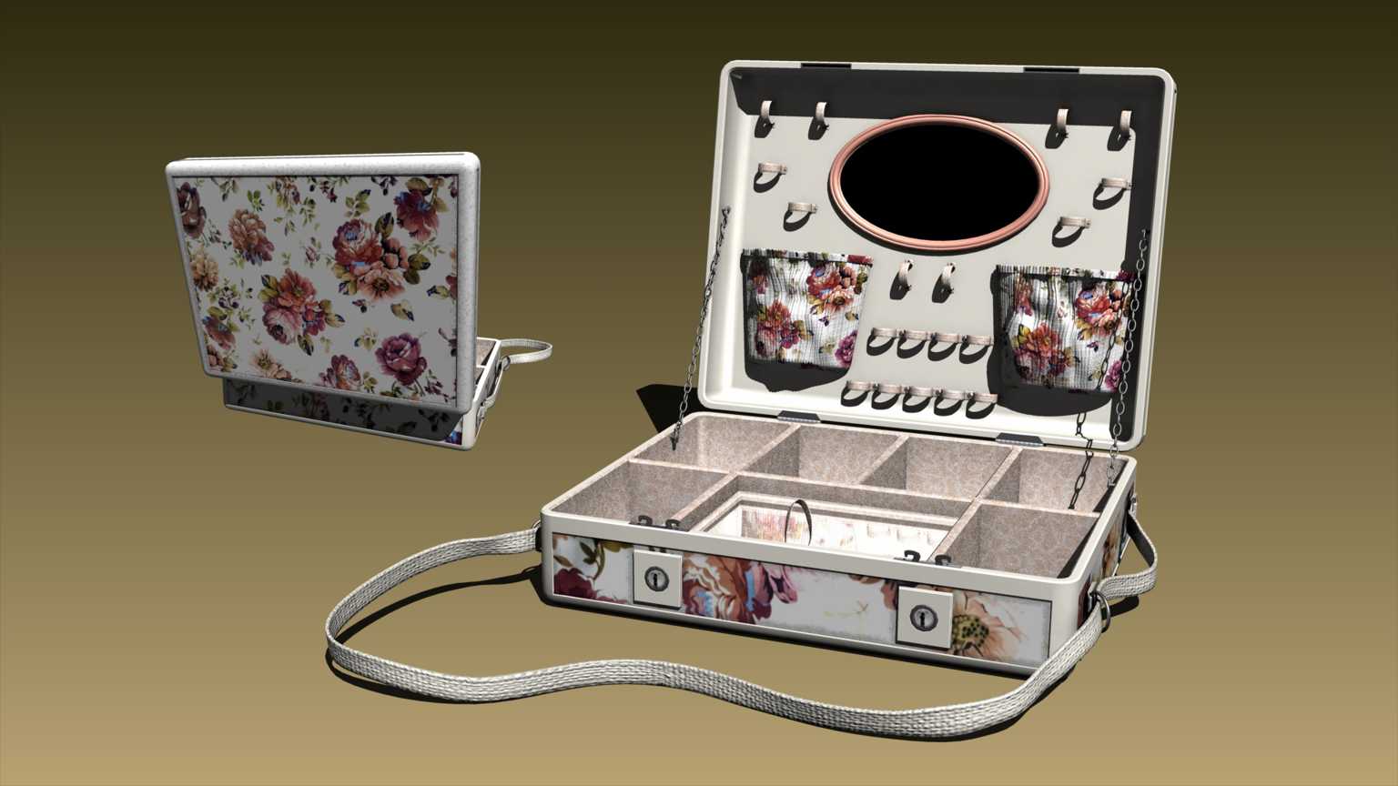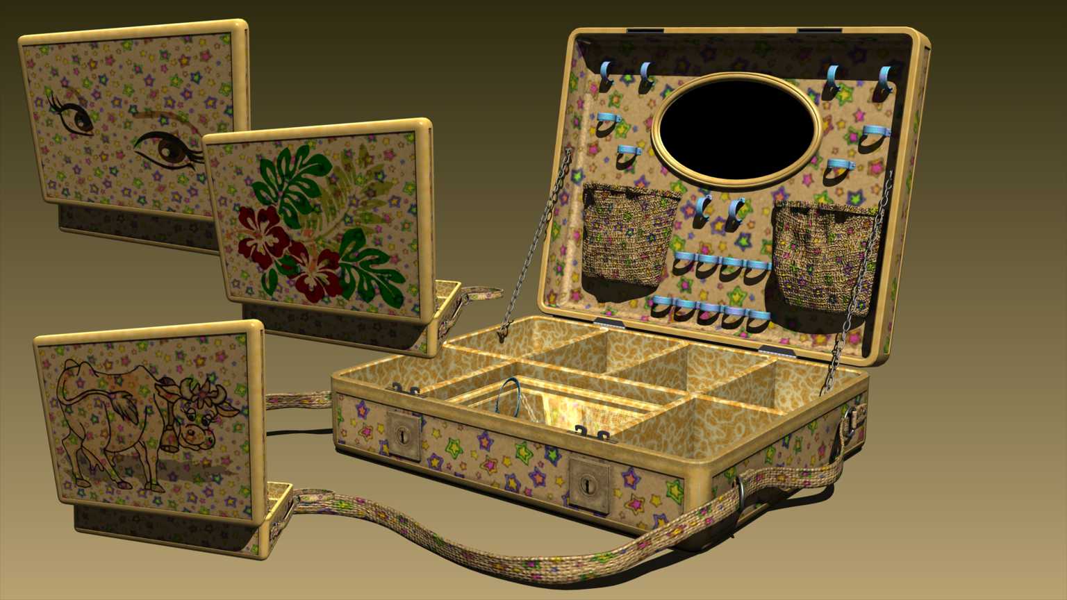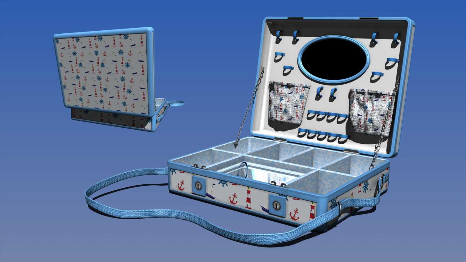 Kosmetikkoffer als Carrara und OBJ Datei. In neun unterschiedlichen Texturvarianten.