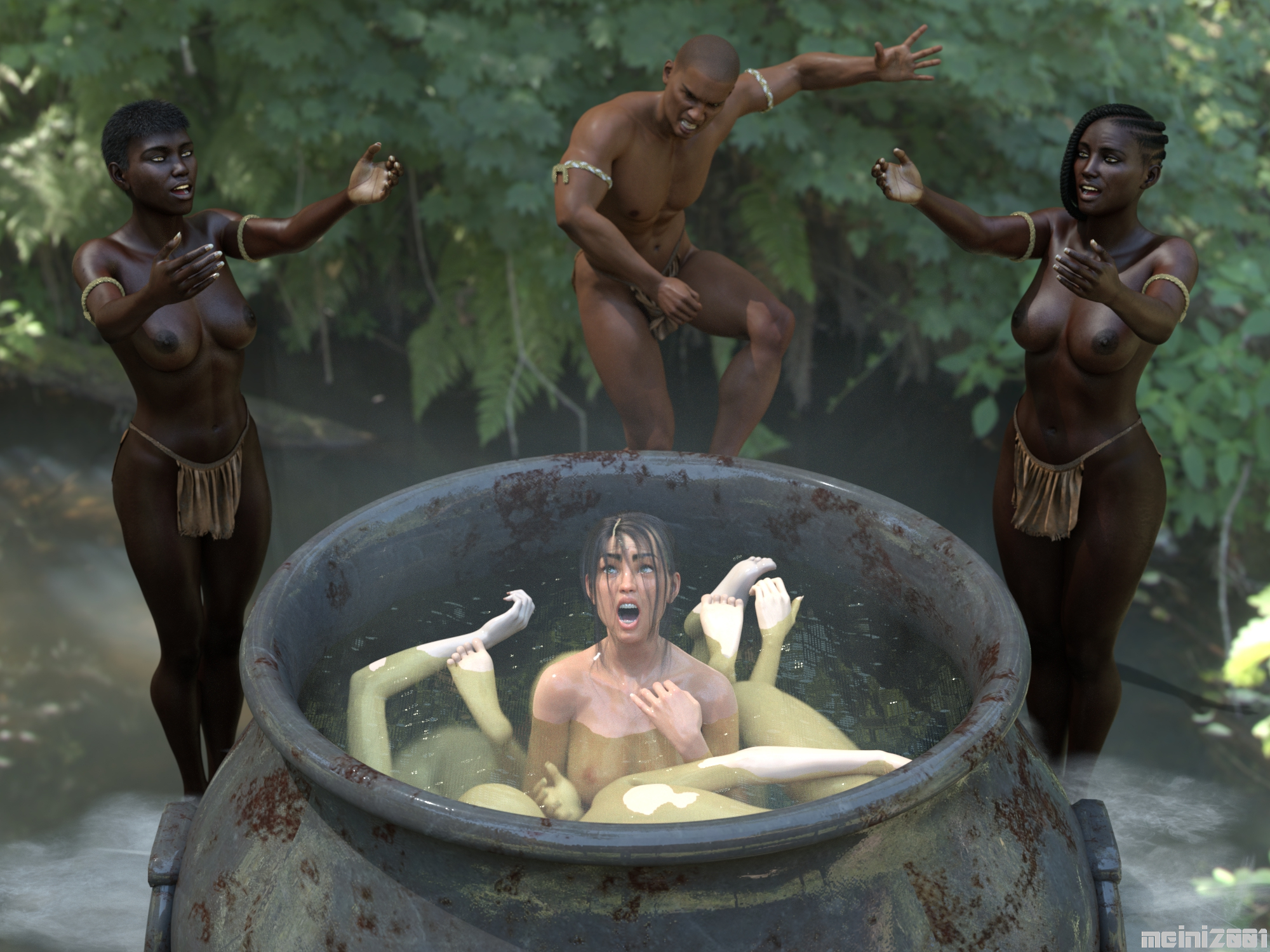 und wieso schwimmen die anderen dort so leblos im Topf? Mich würde ja das nächste Bild als Auflösung interessieren, Sitzen die Canibalen nachher am Tisch und jeder hat ein Körperteil auf dem Teller, oder entsteigt die Dame befriedigt dem Pool und ihr wird von den Umstehenden ein Handtuch gereicht?