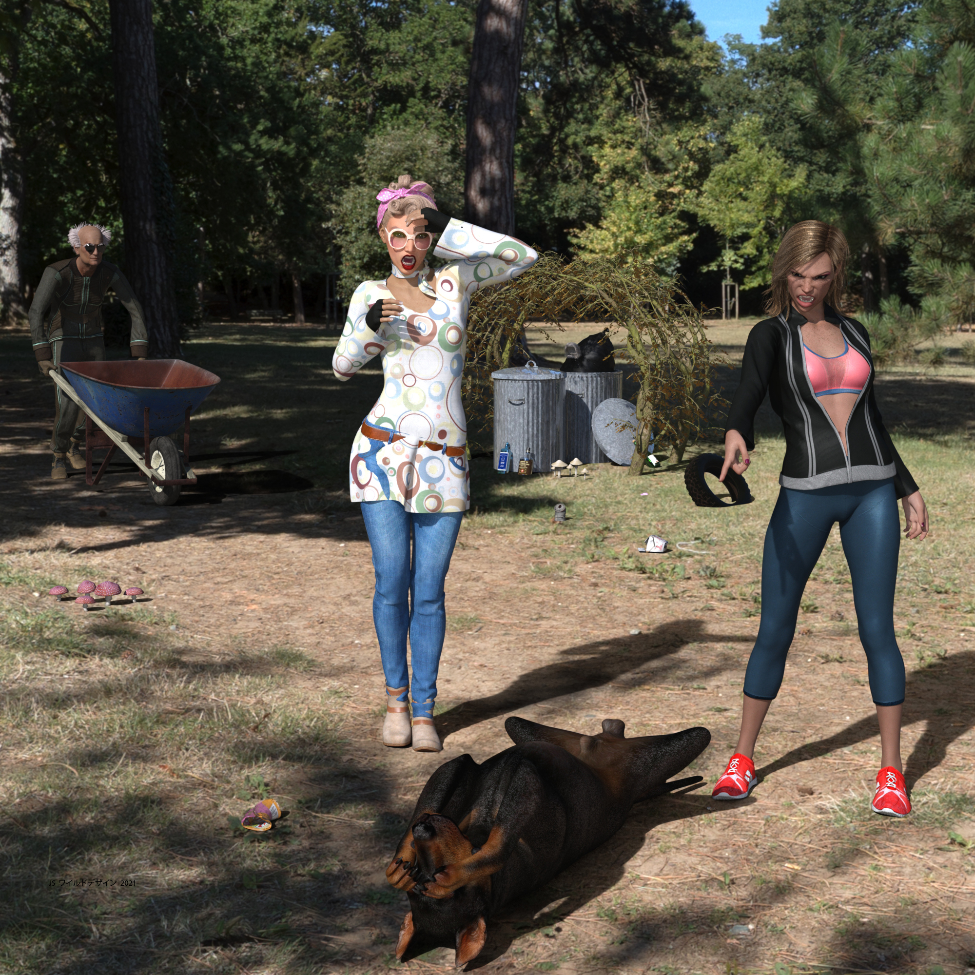 Schämt dich du böser Hund: Ich weis zwar nicht was er falsch gemacht hat, vielleicht Müll verteilt und jetzt kommt der Müllmann und muss alles sauber machen.