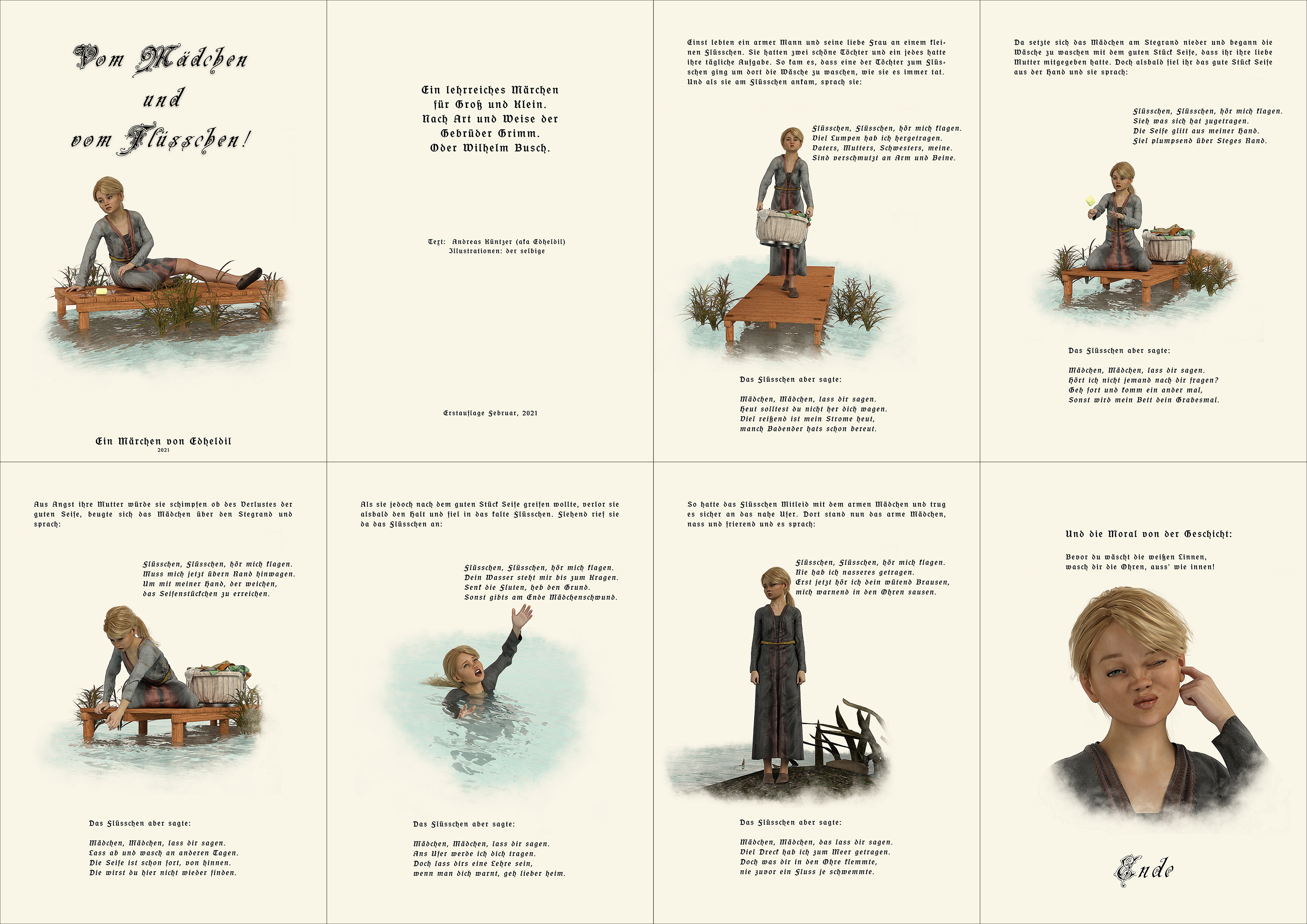(Einen Tick moderner wäre es, wenn Greta Thunberg das Mädchen wäre und beim Suchen der Seife ganz andere verkappte Dinge im Fluss finden würde, die unser aller Zukunft bedrohen ... das wäre dann jedoch ein politisches "Märchen".)