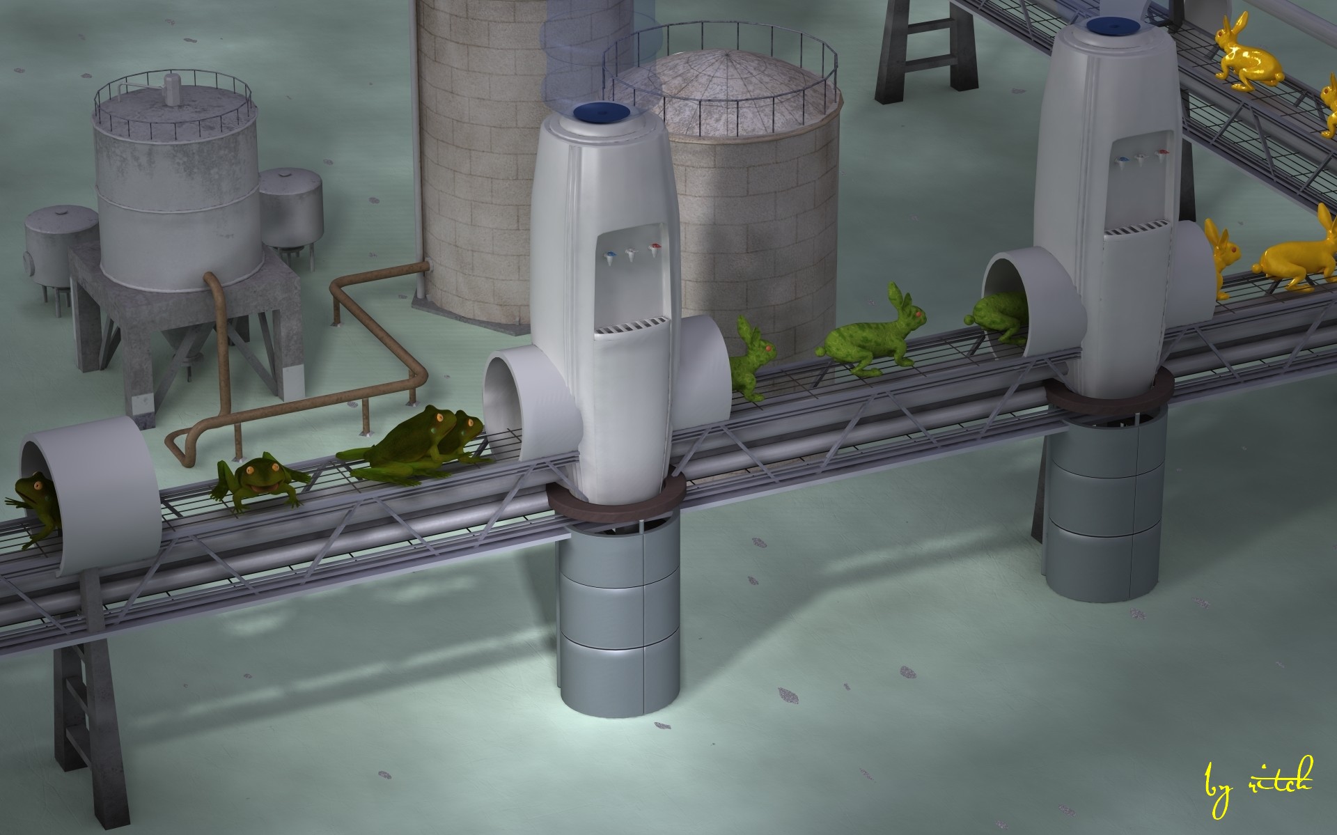Frösche müssen bei Dir schon einiges aushalten...... bis zur Abgabe ihrer Persönlichkeit ...... gelbe Hasen sehen aber nicht gesund aus oder werden die noch golden mit dem roten Band + Glöckchen?