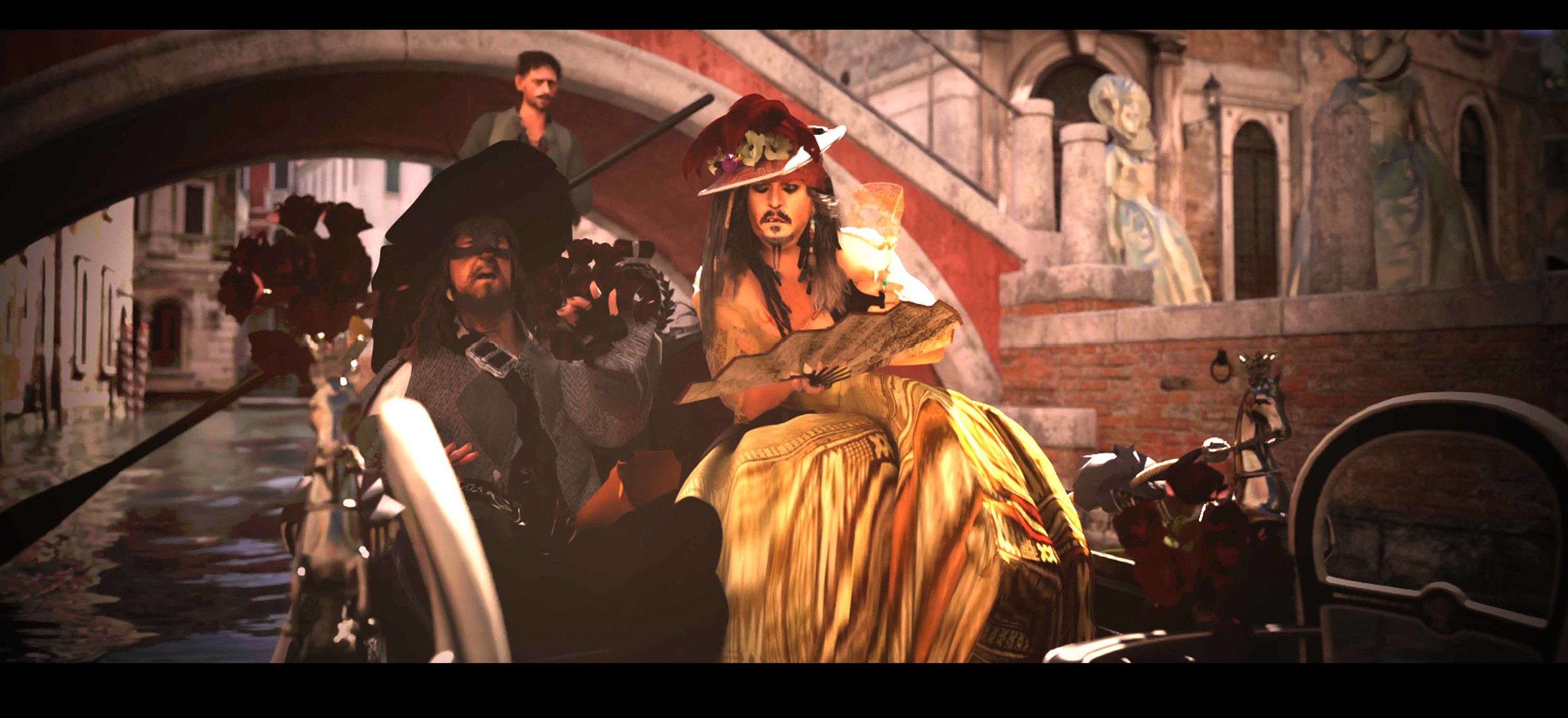 Irgenwann geschah es,dass die Black Pearl im italienischen Mittelmeer rumdümpelte durch ein sagen wir mal ...navigatorischen Unfall dank Jack Sparrows Fahrkünste . Und Hector Barbossa die gnadenreiche Idee hatte dort die ganzen reichen Leute vom pompösen Venedig ihre Klunker abzunehmen-Doch leider war der Palast der Comtessa von Rinaldo sehr gut bewacht und Jack und Hec. mussten es mit einer Piratenlist versuchen-Zum Glück war grade Carneval in Venedig.