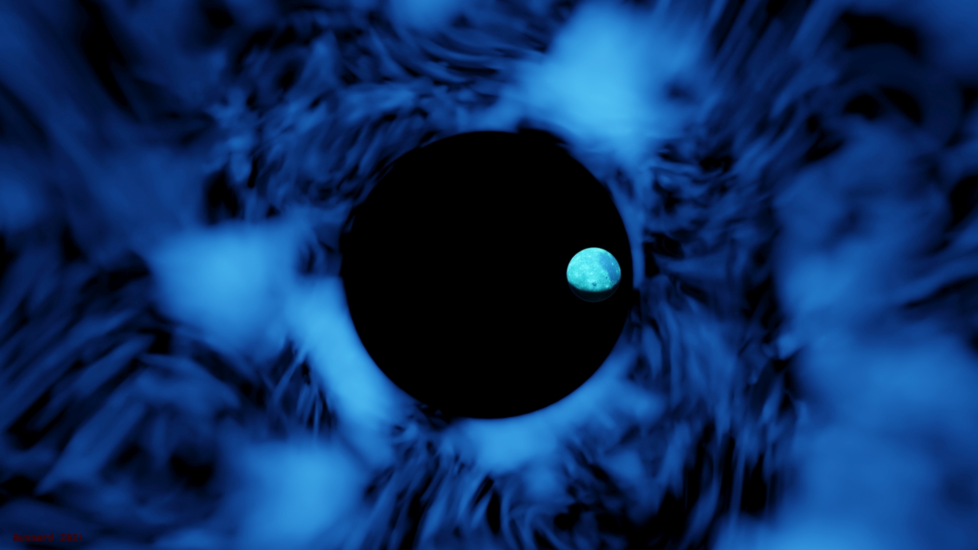 • Abgefahren! Ein Planet kurz vor der Ereignishorizont-Spaghettisierungsgrenze eines Black Holes. Sowas sollte auch im Zentrum unserer Galaxie nicht selten sein, aber bislang noch schwer zu beobachten. Flüster: Was denkst DU? Handelt es sich dabei um eine rein gravimetrische Einverleibung von Masse, oder um einen Übergang in ein anderes Universum? 8)