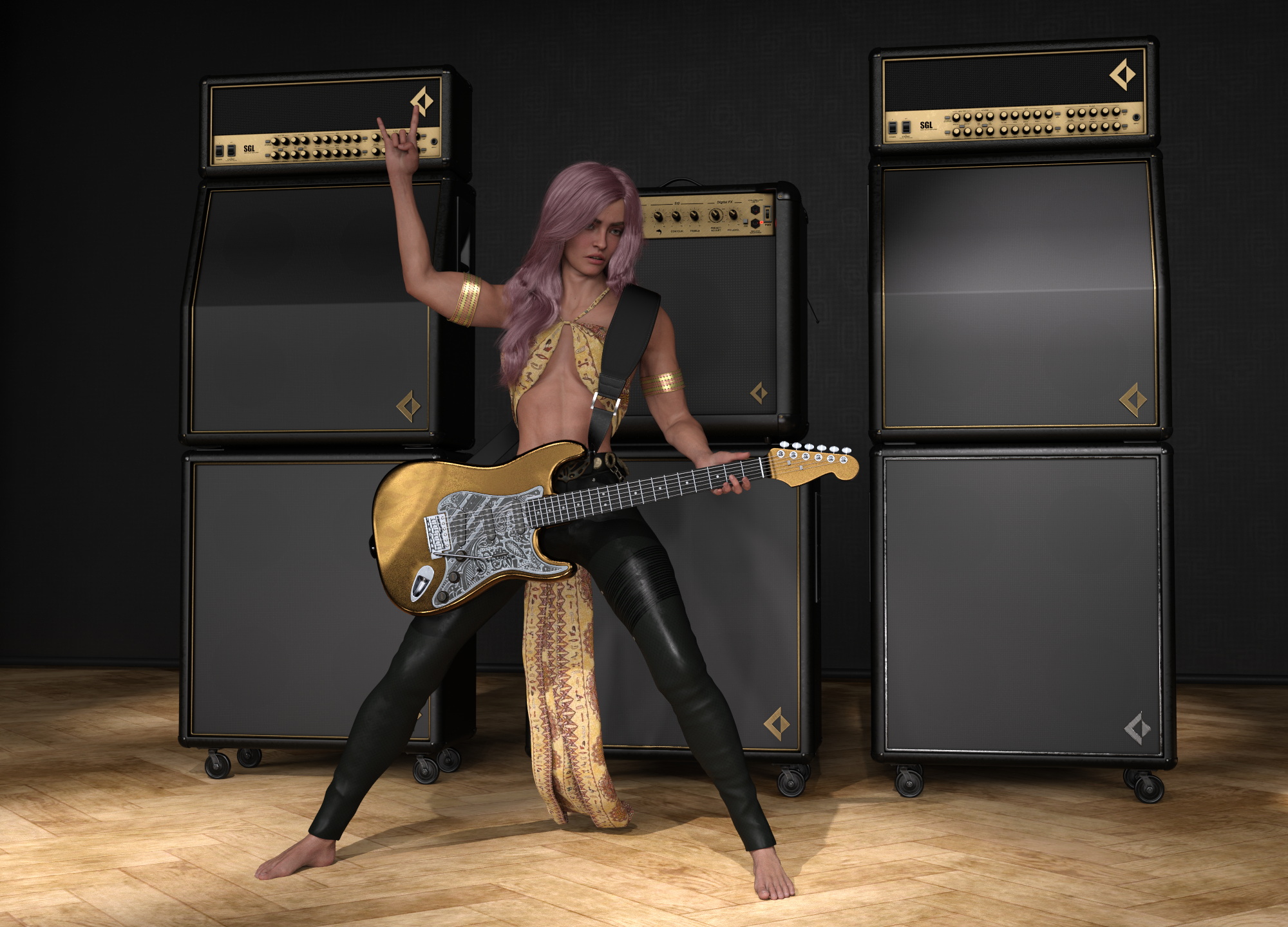 Tolles Bild. Vielleicht die Gitarre noch mit Kabel irgendwie anschliessen.