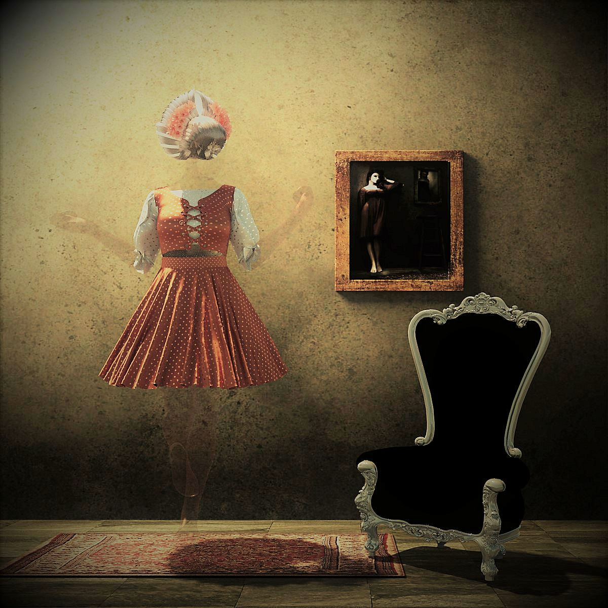 Also ich find das Bild total interessant und bissl mystisch. Vielleicht würde der Sessel mit Bezug(fett gestepptes Leder) beser kommen als einfach schwarz. Ist aber nur meine Meinung.