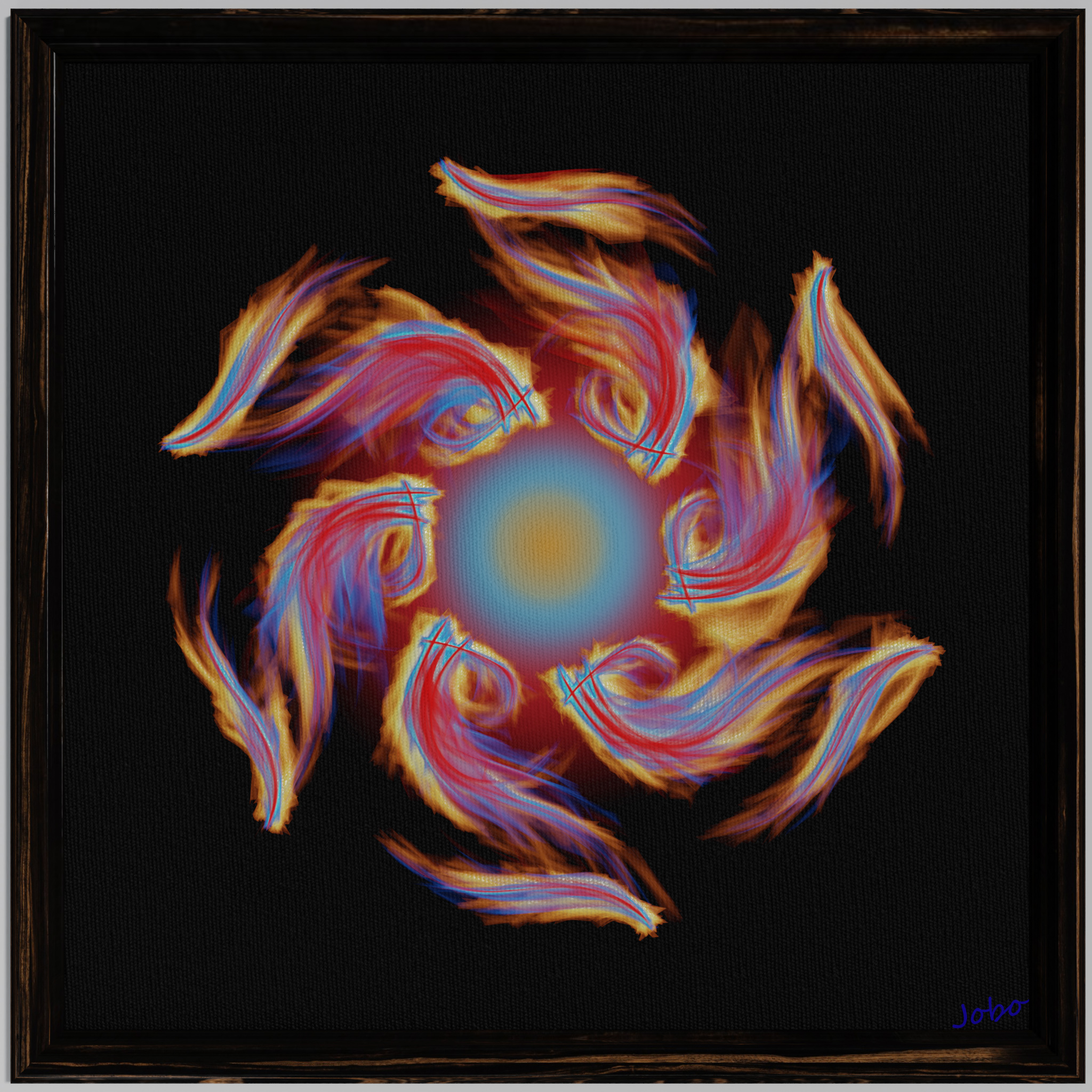 Gemälde mit flammendes sonnenmotiv.