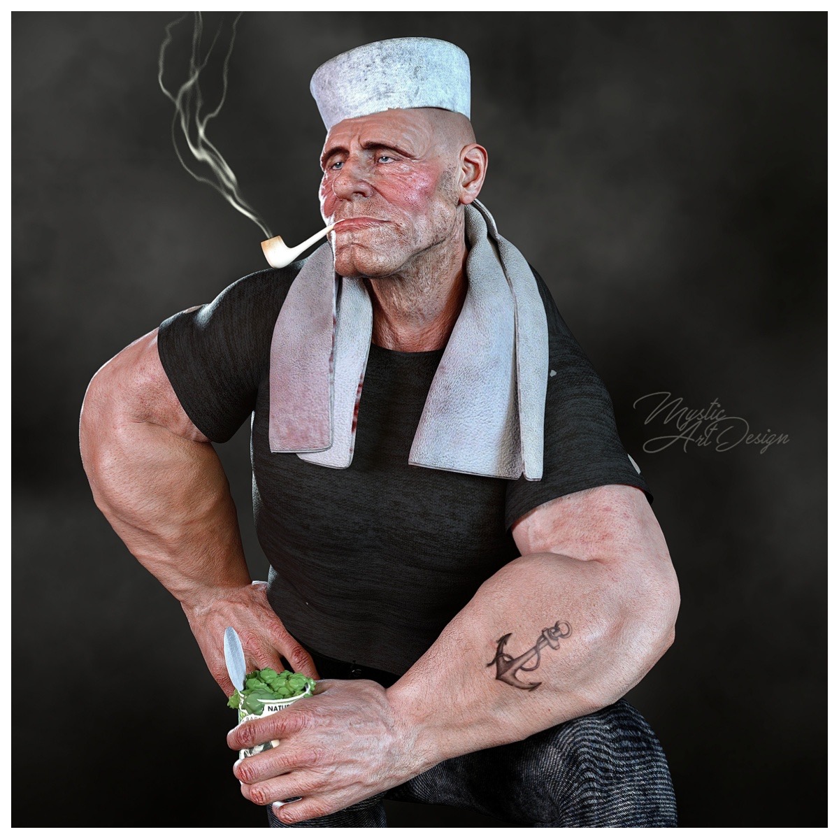 Hier habe ich versucht die Toonfigur“Popyey“ in einen realen Charakter zu verwandeln ,