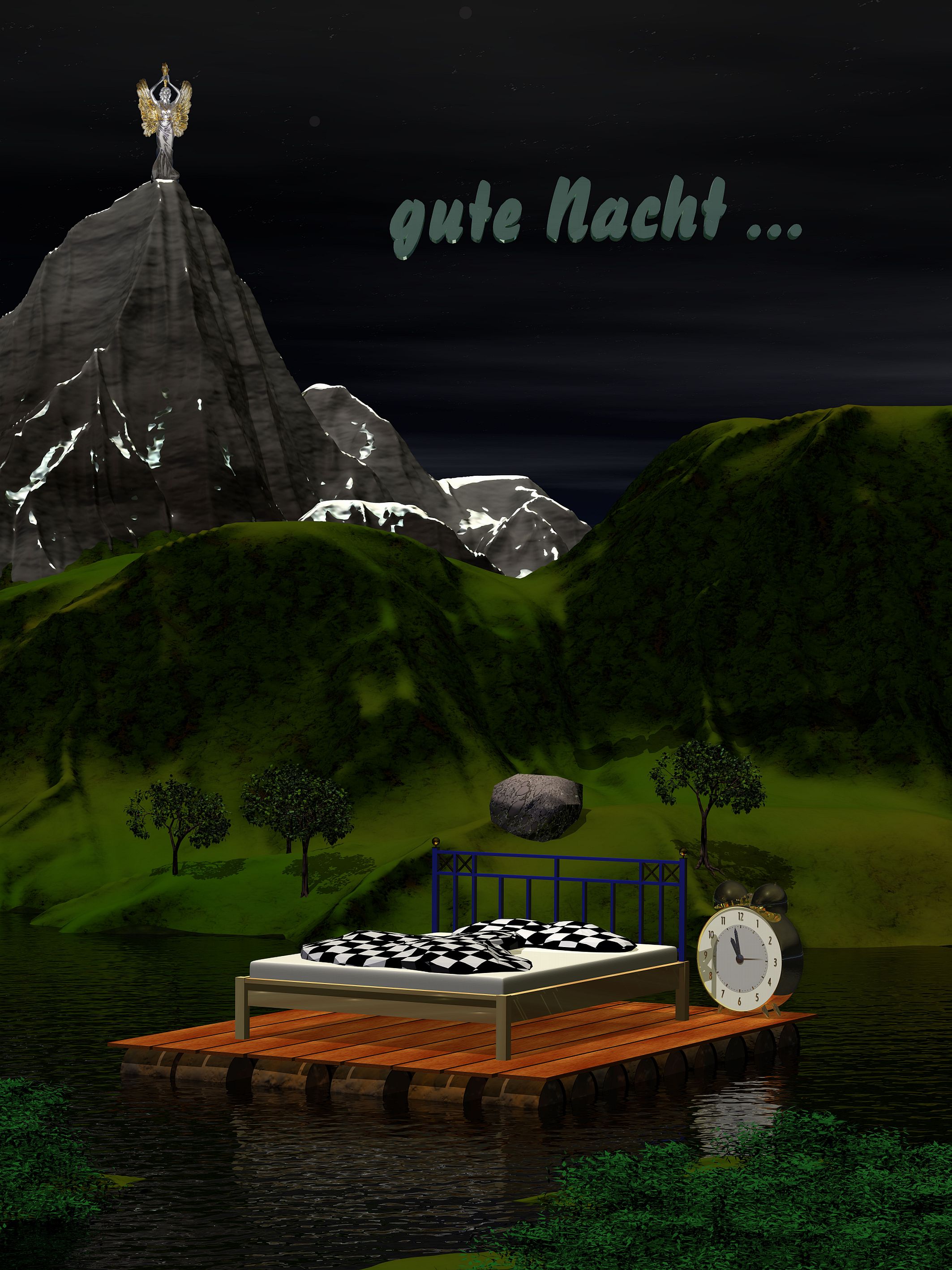 Bett auf einem Floß mit Riesenwecker....ziemlich surreal...aber so könnte ein Traum sein. Nur weiter so!