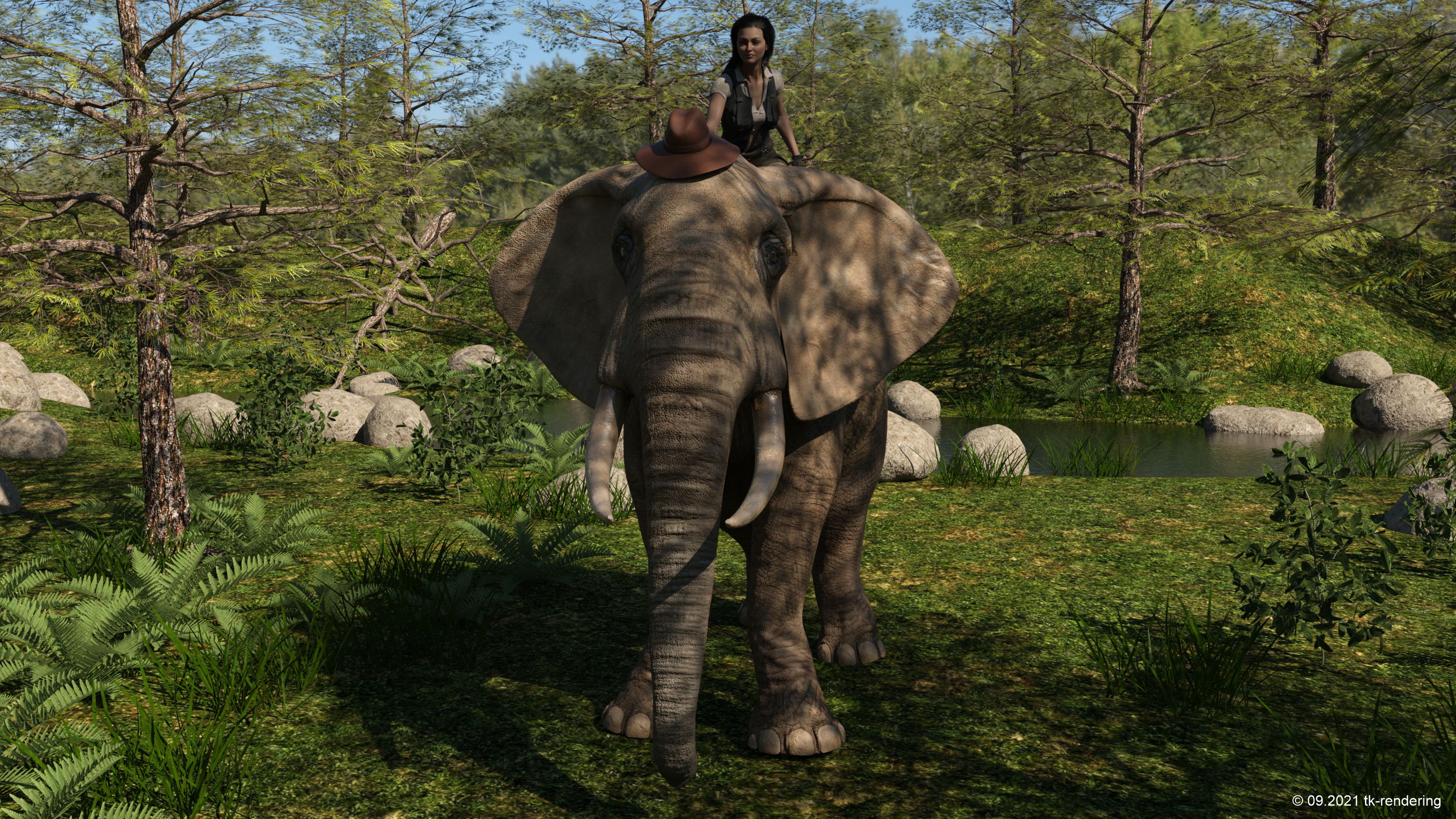 Da ist sie, im Wald, sie hat ihren Elephant mit einem Hut hübsch gemacht und macht sich jetzt auf den Weg zu neuen Abenteuern. ![]()