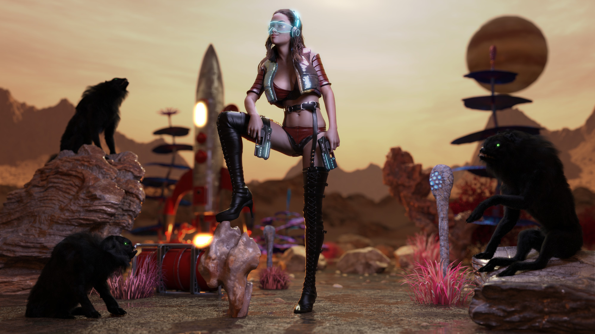 Landung auf dem Mars. Ob die heimische Tierwelt hier wohl friedlich ist?