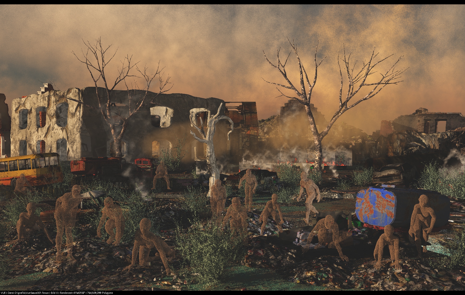 Irrsinnige Renderzeit. Da hätte man sicherlich noch einiges an den div. Einstellungen schrauben können; sodass dieses Bild evtl. nur noch zwei bis zehn Prozent der Originalrenderzeit benötigt hätte...hmmmhhh....