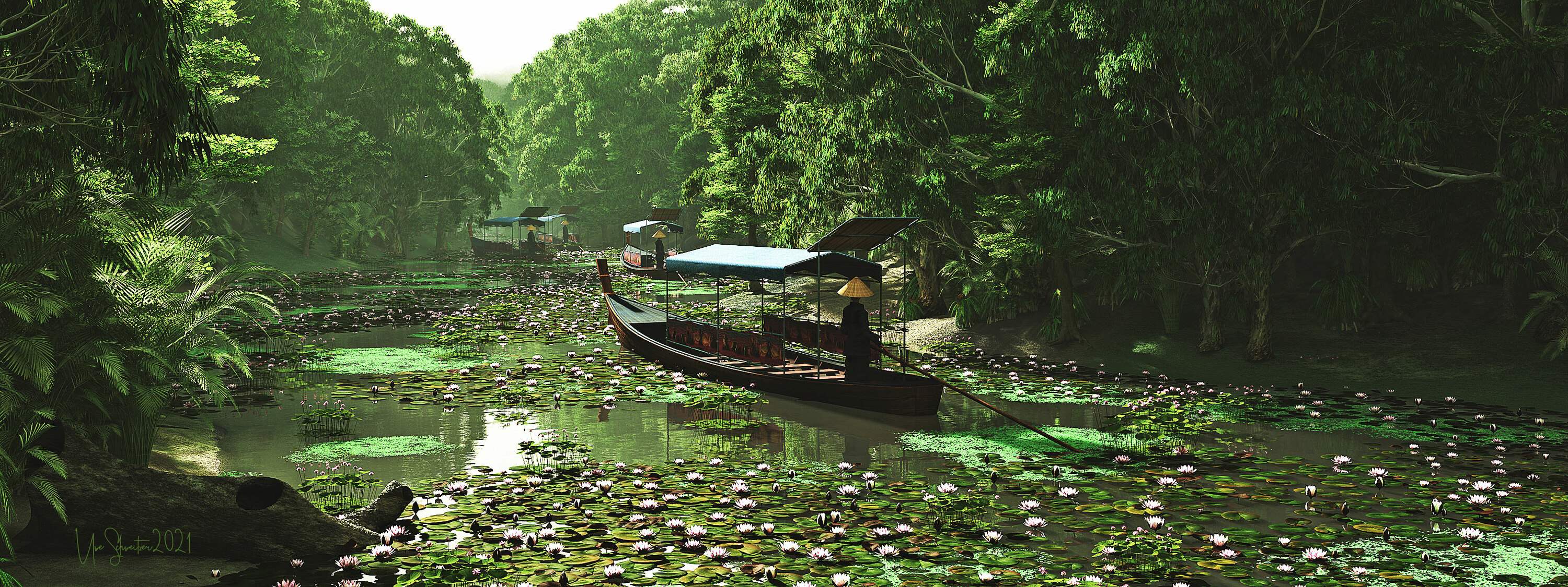 Die Boote sind voller knipsender Touristen, die Seerosen sind eigentlich Lotus und Wasserhyazinthen ... und dazwischen treiben leere Plastikflaschen und Unrat.