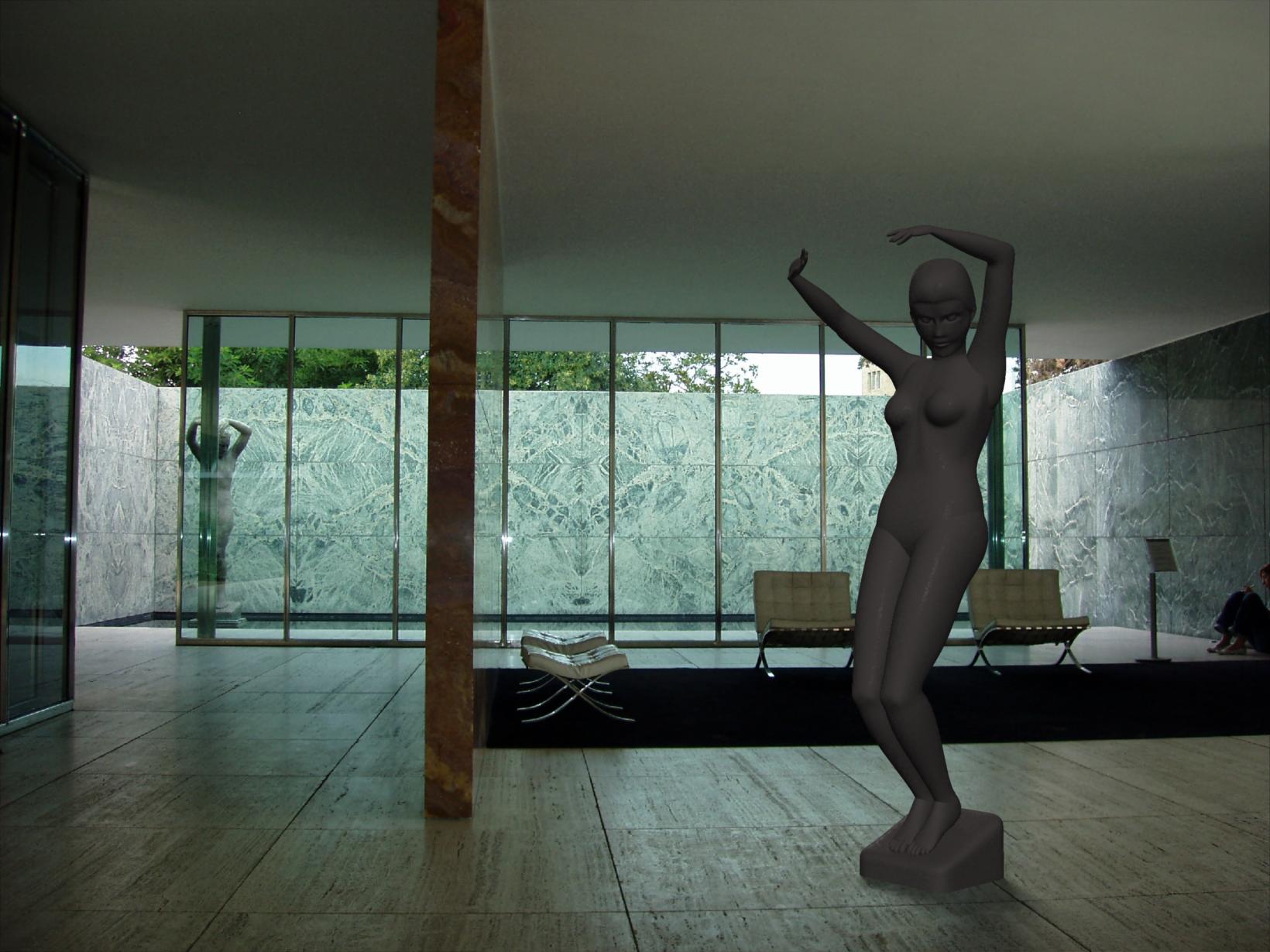 Versuch eine Original-Statue mit Carrara nachzubauen.(Original hinten links). Foto als Hintergrund.