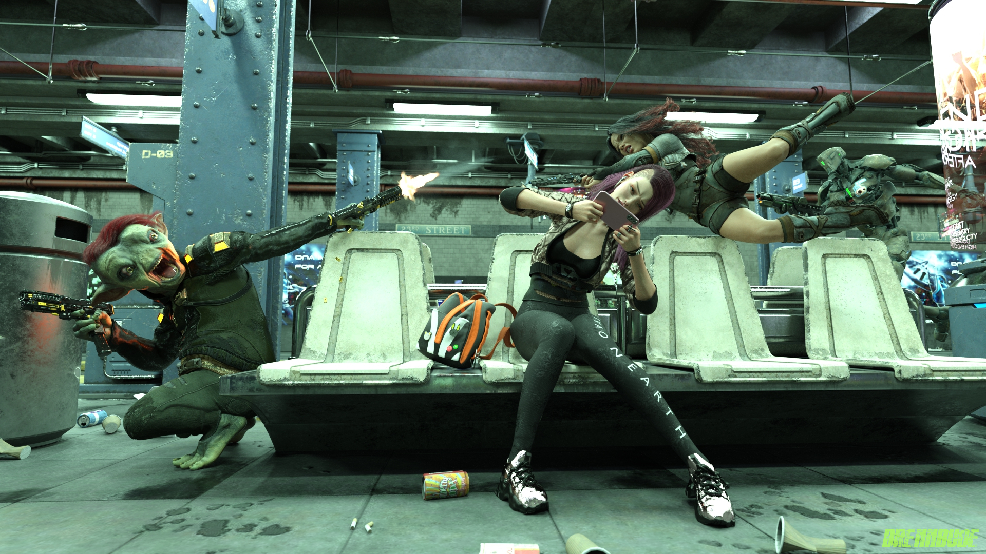 Biggy und Sparkle auf dem U-Bahnhof mit einem Flüchtigen liefern. ![]()