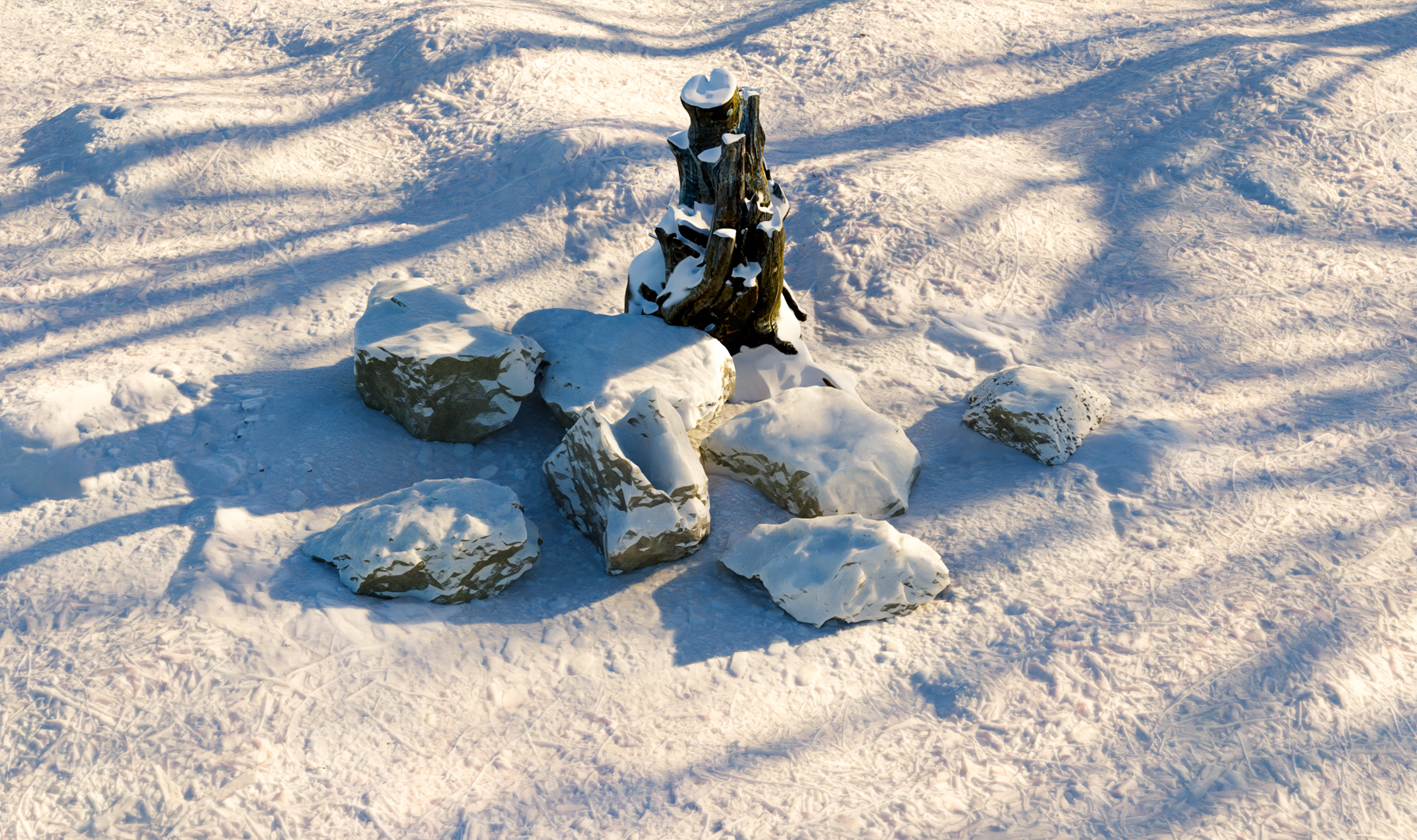 Genau so muss Winter sein. Nun aber noch Absperrband aufstellen, falls es sich um ein Skigebiet handeln sollte.