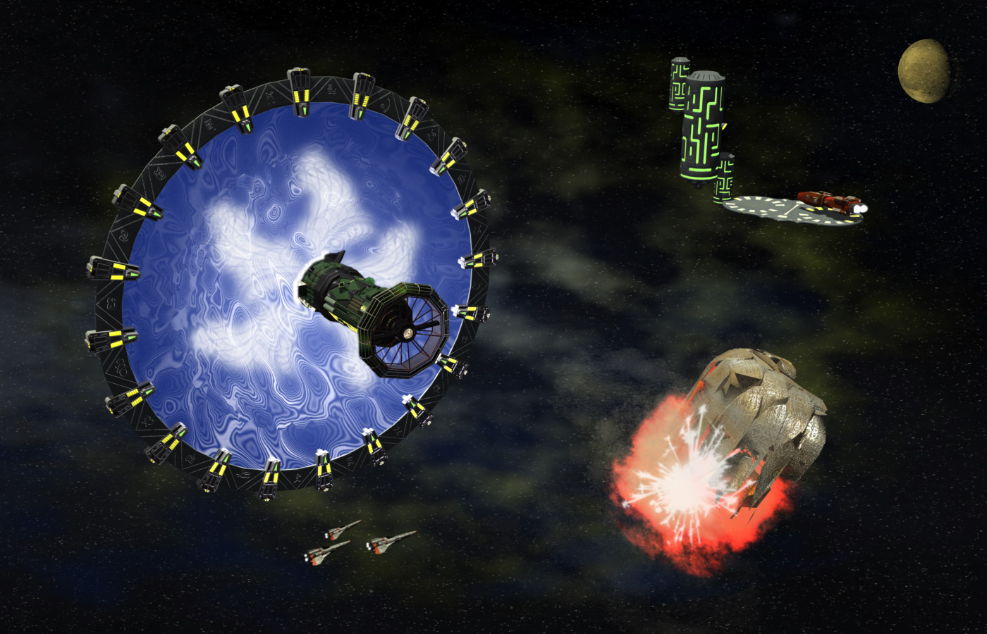 Sehr schön gemacht, insbesondere das große blaue Objekt.