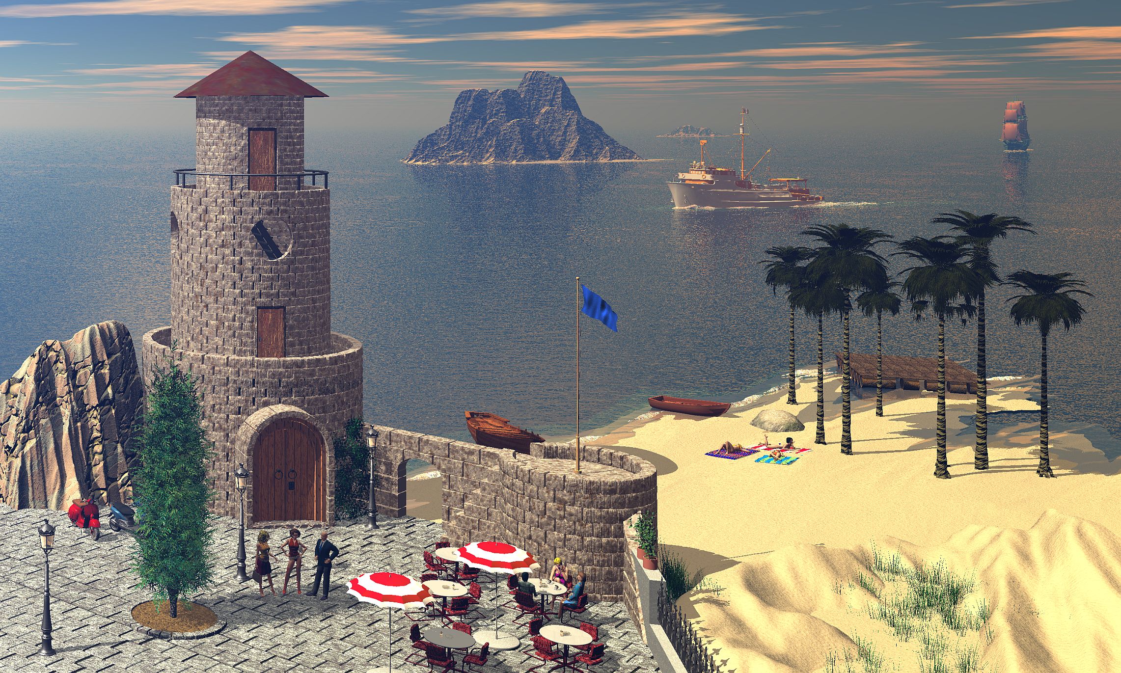 Die Wellen an dem schiff finde ich cool, ansonsten auch nicht schlecht, belebte Szene, aber die Burg sieht sehr "Lego" aus