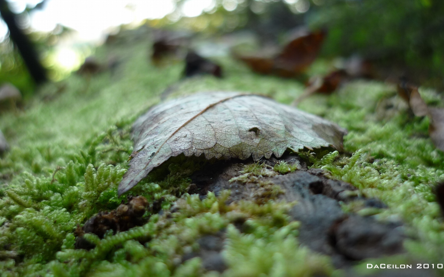 Das Blatt lag auf einem bemoosten Baumstamm. Abstand waren ca. 80mm und er Photo stand direkt auf dem Satamm.