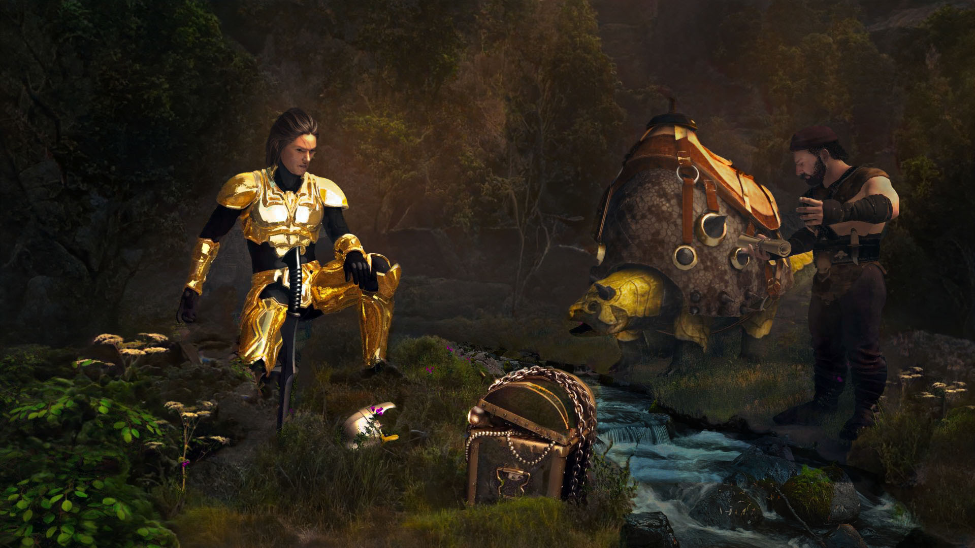 Jo, der Bach kommt deutlich besser rüber, allerdings empfinde ich -schon bei der ersten Version- das Leuchten der Rüstung etwas zu stark. Eigentlich müsste doch eher der Vertreter des Zwergenvolks im mystischen Glanz erscheinen