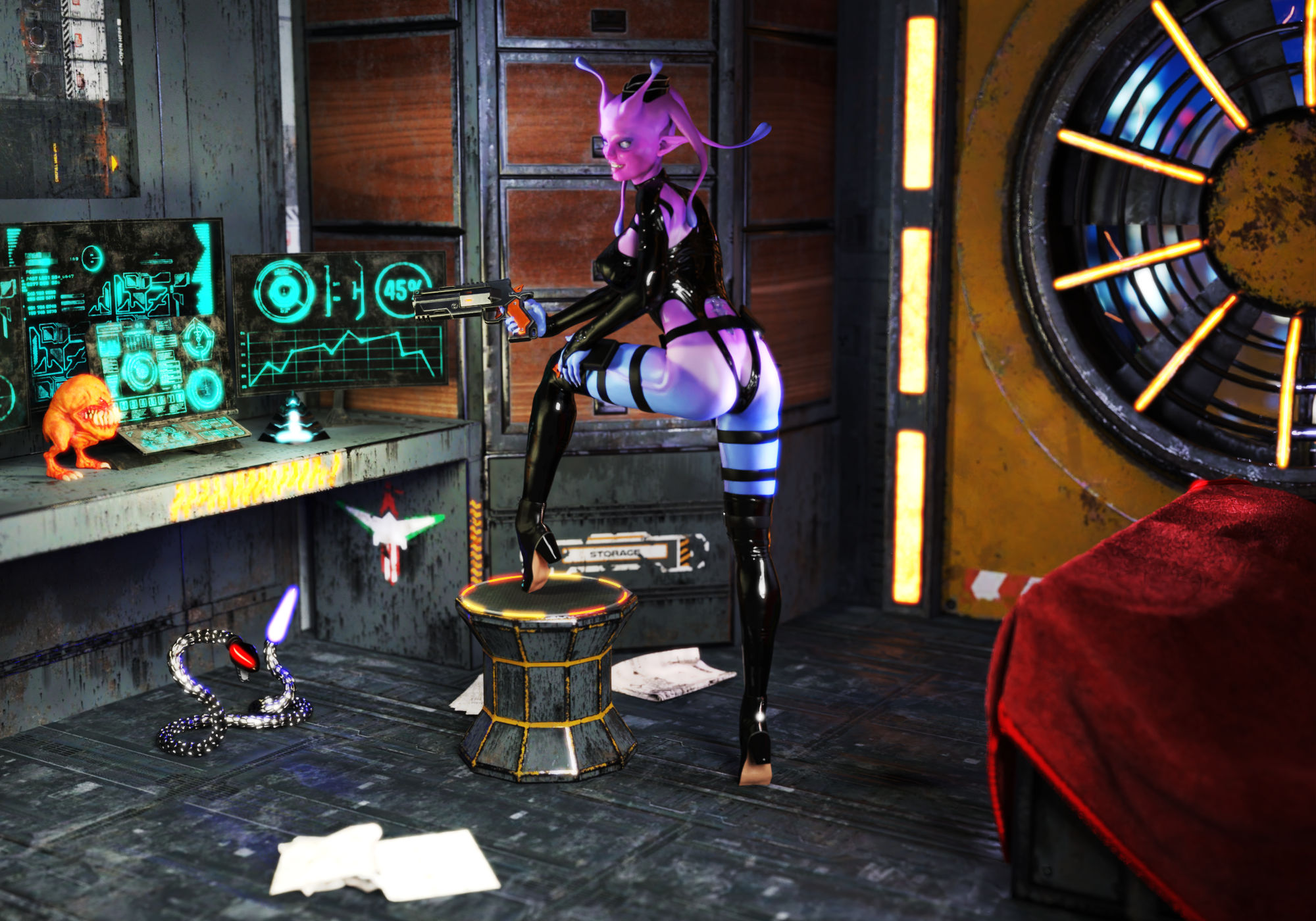 Zydia war Cop in einer futuristischen Großstadt. Während sie in den Stiefel ihrer Uniform schlüpfte, fragte sie sich, was ihren Haustiere heute wieder anstellen würde, während sie nicht zuhause ist. Es handelte sich um eine kybernetische Schlange und einen Gnasher, der von einem weit entfernten Planeten stammte.