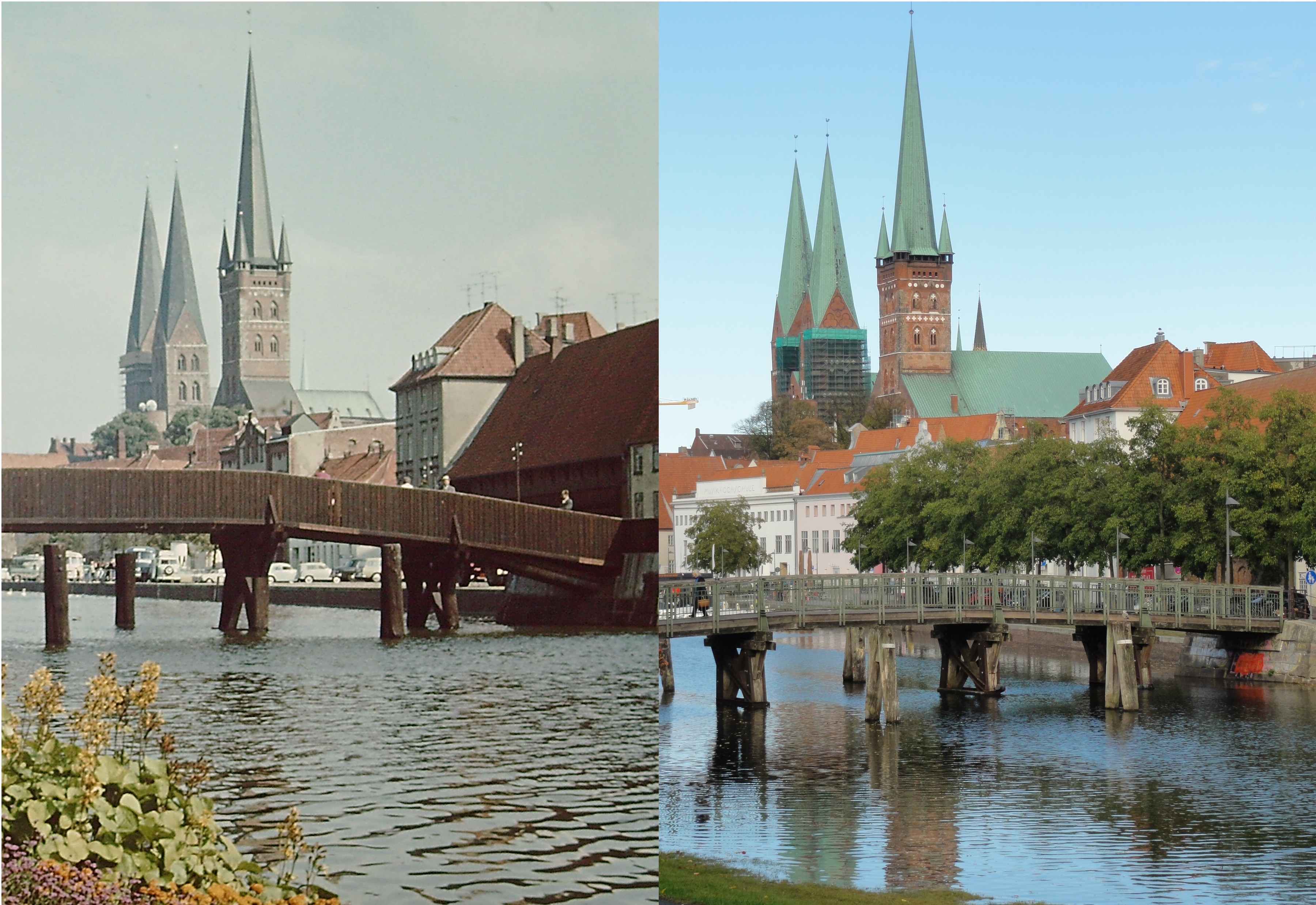 Links: 1964 mit dem gescannten Dia einer Kodak Retina 3C. Rechts: 2018 mit einer Sony HX5V aus ähnlichem Winkel. Um Fehlfarben oder Grissel/Pixel geht es hierbei nicht, sondern nur um die Entwicklung der Fotografie.