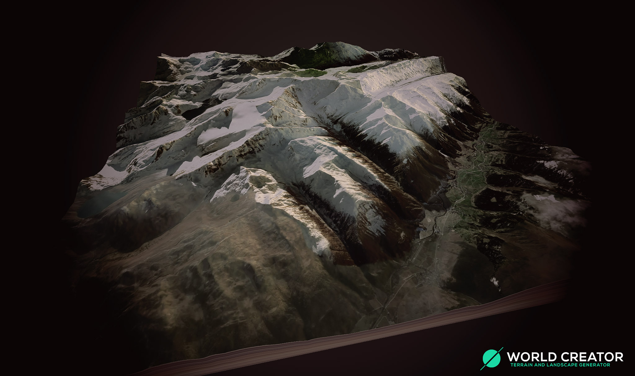 Für einen Eintrag in der Linksliste erstelltes Beispielbild. Eine Heightmap in World Creator 2 geladen, das Satellitenbild drauf und ein bisschen mit den Einstellungen gespielt, et voilà.