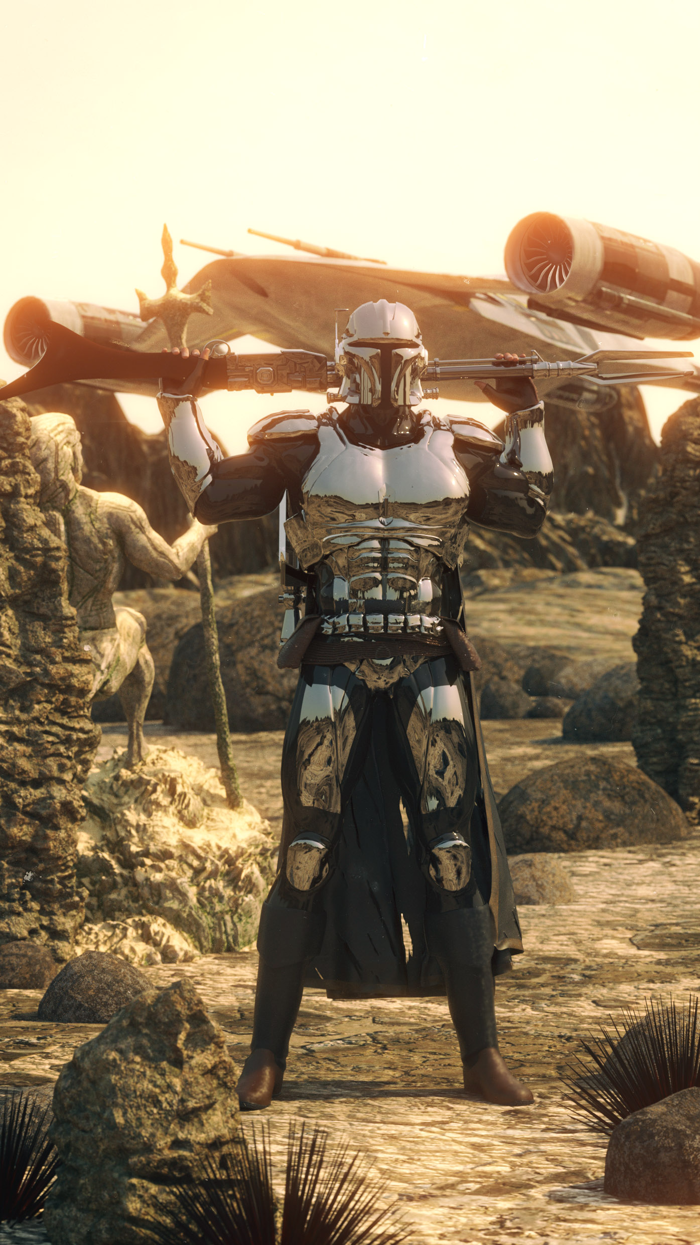 Hier ist mein Artwork von der Netflix Serie " The Mandalorian" gerendert mit der Daz3d 4.20 Engine und Postproduktion mit CC19.