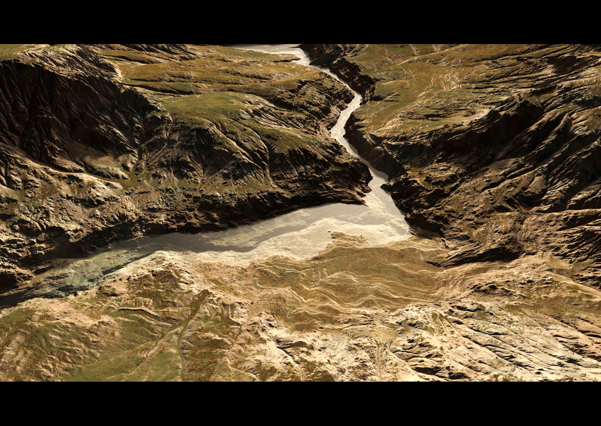 • Ein Terragen, oder? (mit Rock-Texturen oder "erosions plugin" ?)