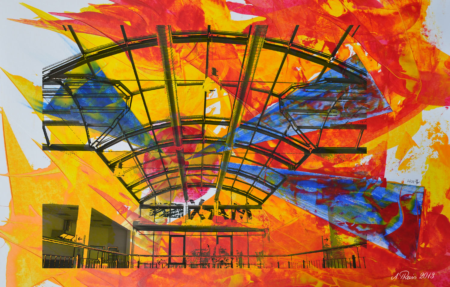Damals hatte ich eine mehrwöchige Ausstellung in einem großen Center, ich machte in der Mittagspause Fotos davon, ansonsten war nicht viel Zeit, da der Ausstellungsraum mehrere 100 m2 umfasste und betreut werden wollte, ich druckte ja auch bis A3 auf Wunsch Werke als Bild oder Karte von mir aus, da die Bilder ansonsten von mir gerahmt und mit Passepartout versehen waren, in der Größe bis A Null Plotterdrucke.