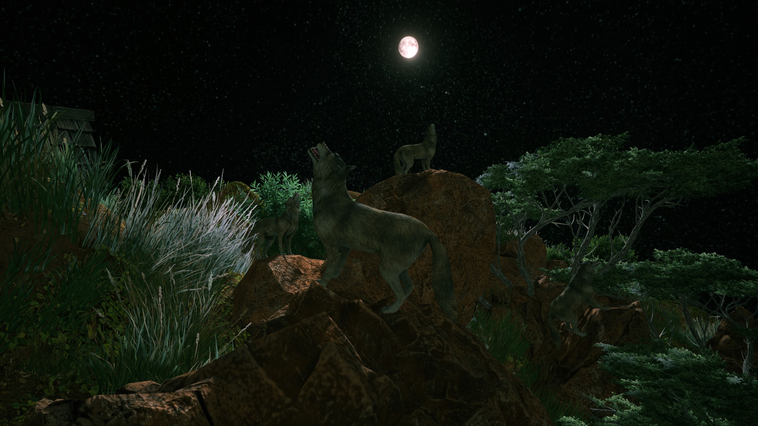 Nun sind die Wölfe gut beleuchtet. Der Mond ist hier von FlowScape und nicht nachträglich eingesetzt worden.